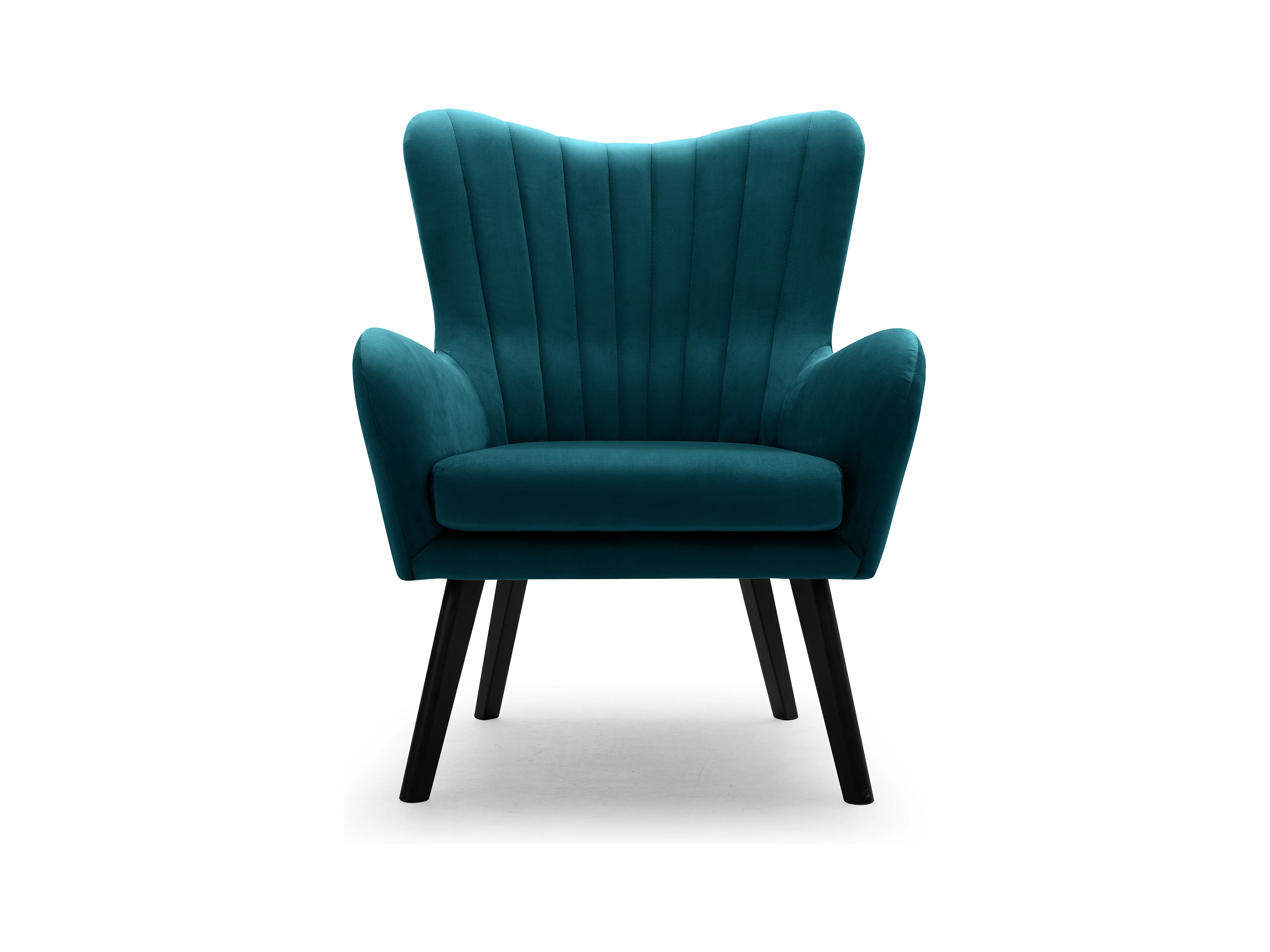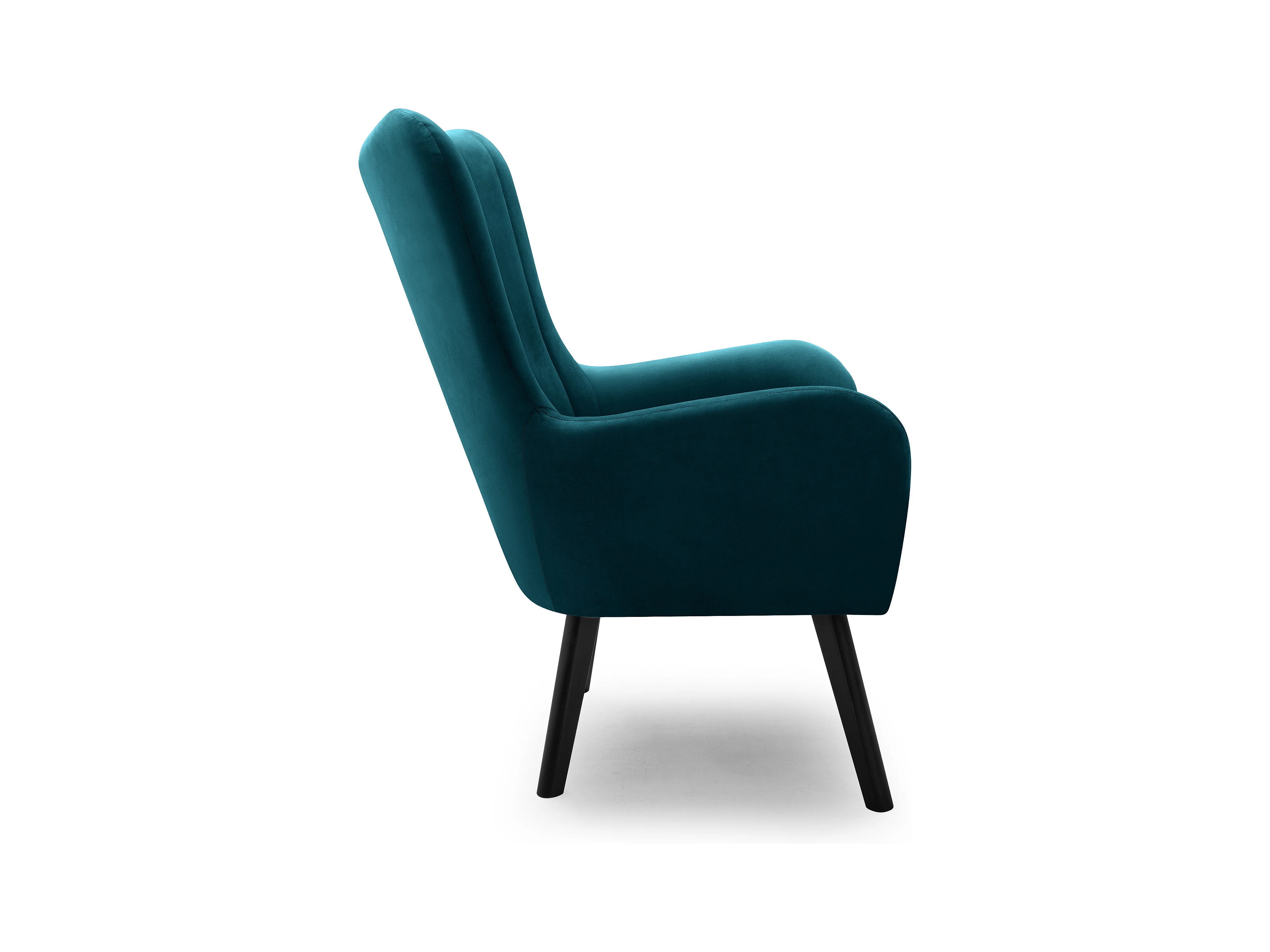 Ted fauteuil van Velluto – Elegante fluwelen stoel, hoge rugleuning, brede zitting, zwarte houten poten, 76x78x100 cm, Turquoise