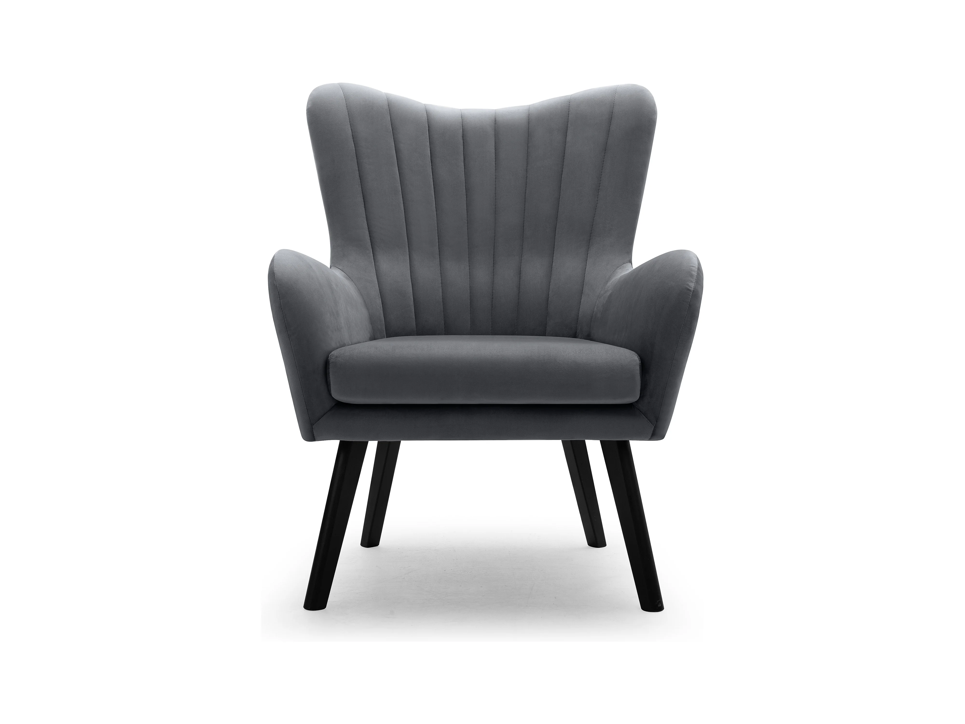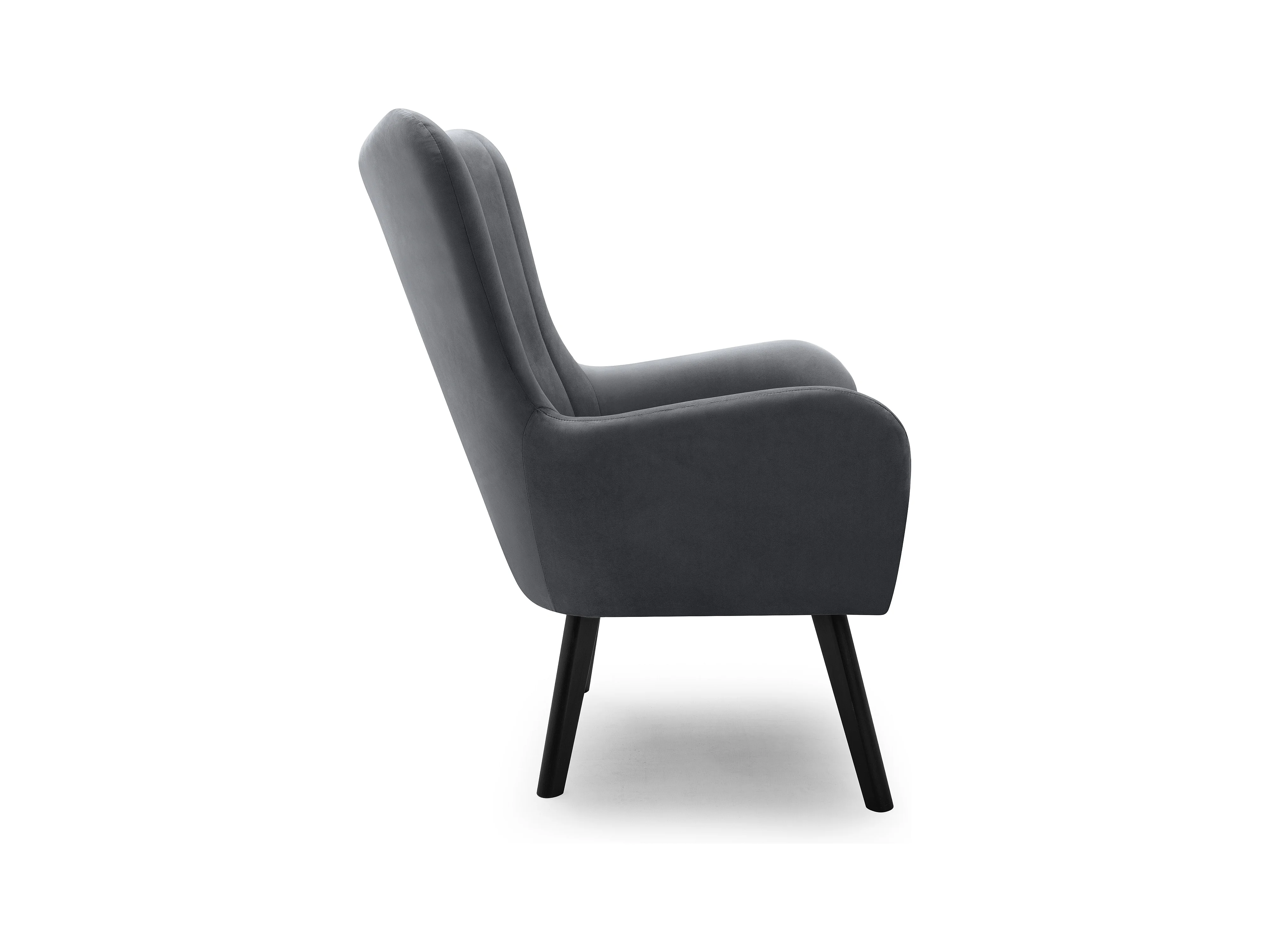 Ted fauteuil van Velluto – Elegante fluwelen stoel, hoge rugleuning, brede zitting, zwarte houten poten, 76x78x100 cm, Grijs