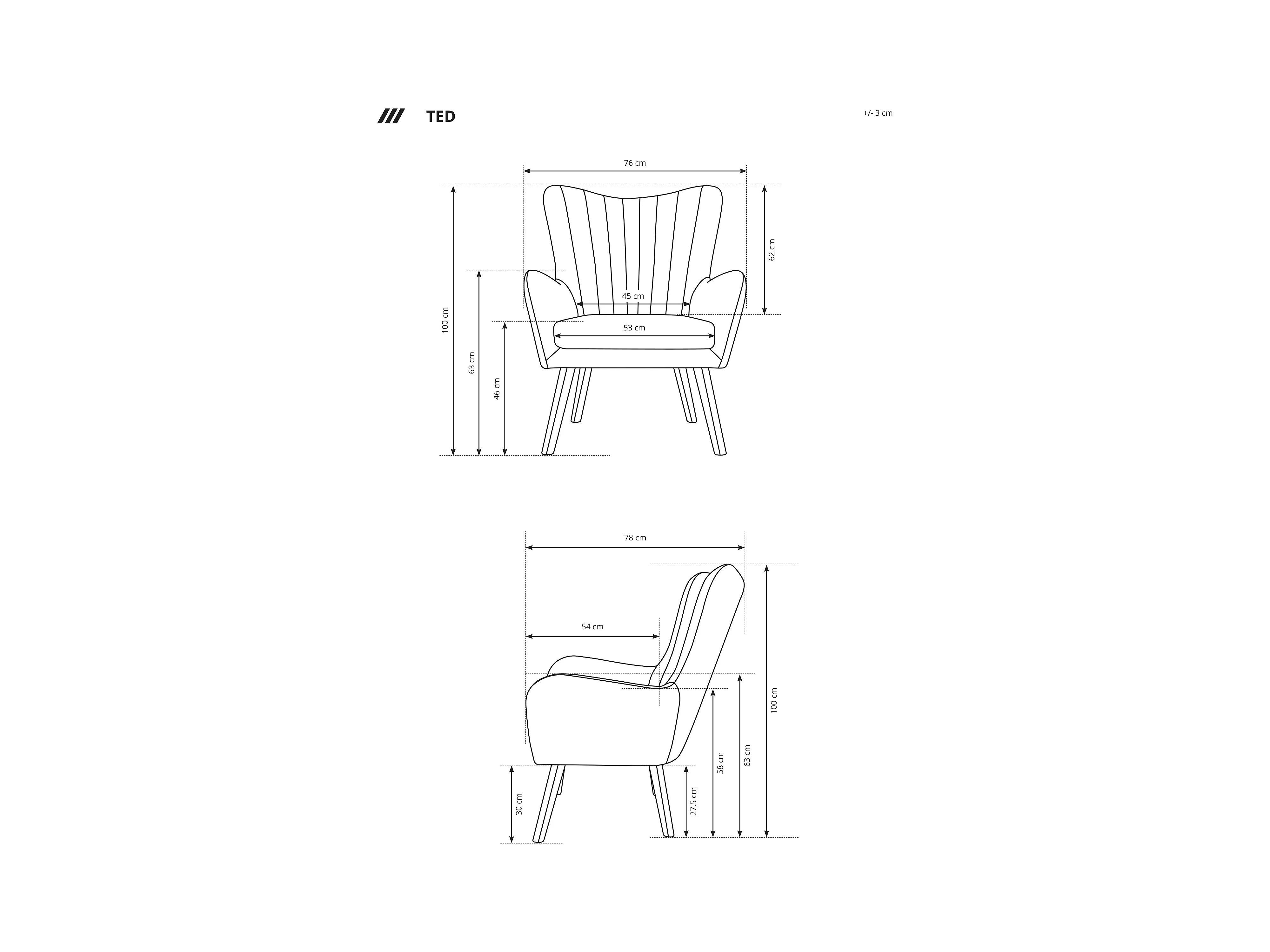 Fauteuil met rechte rugleuning