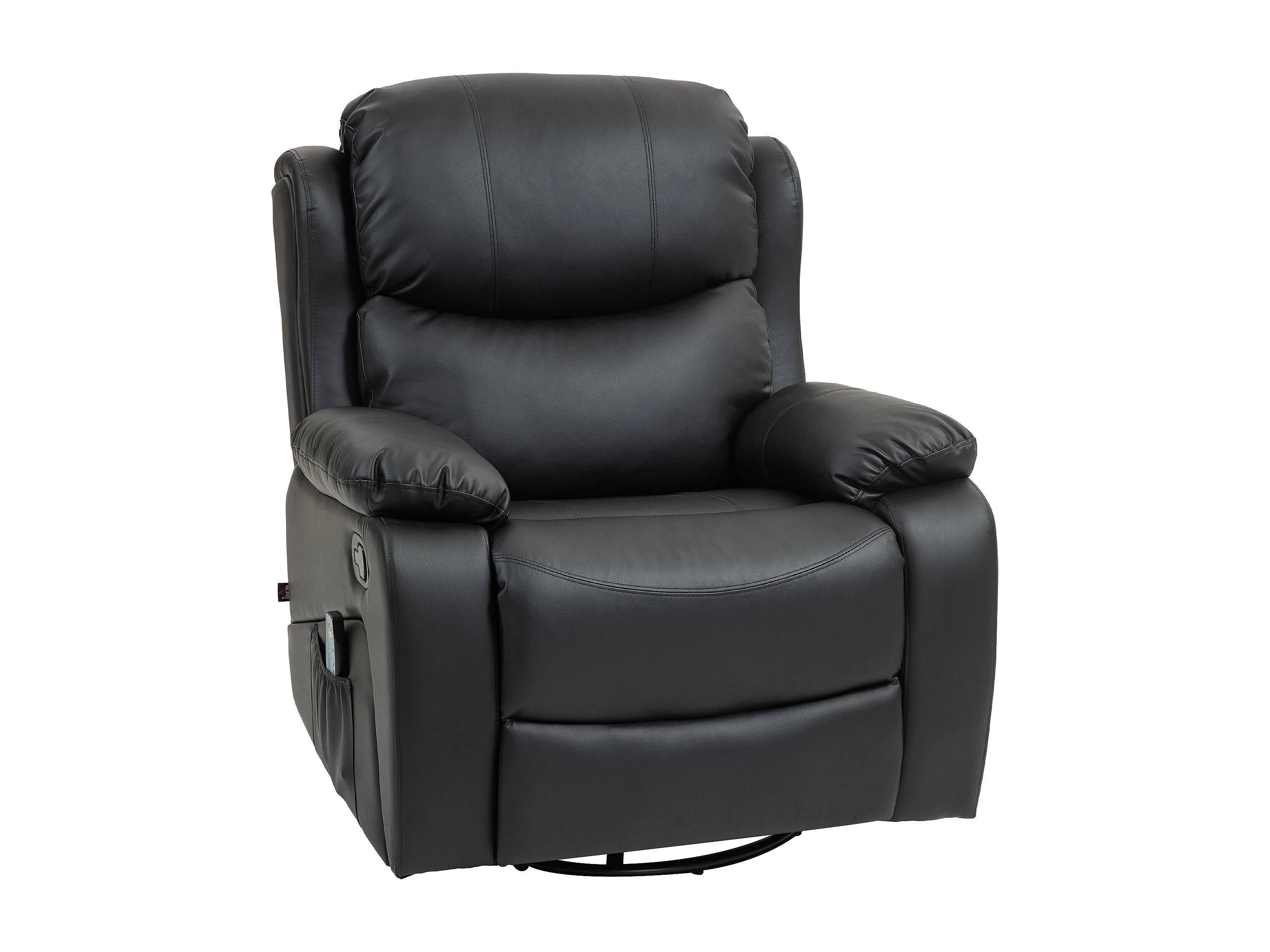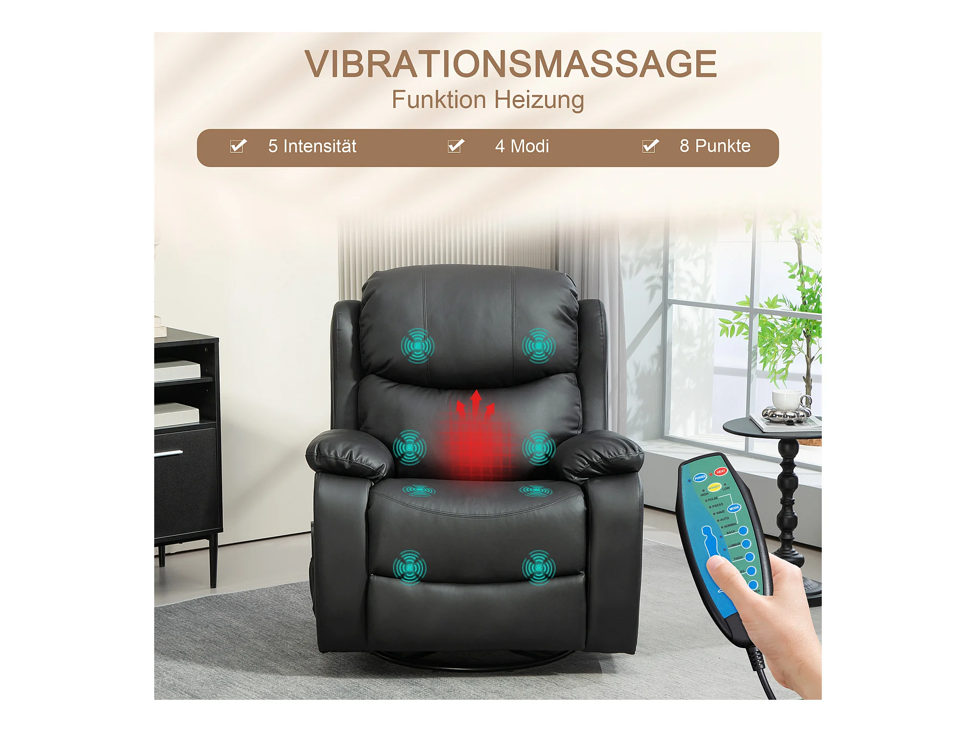 Relaxfauteuil met massage en verwarming, relaxfunctie, draaibaar, leer, zwart (97x92x104 cm)