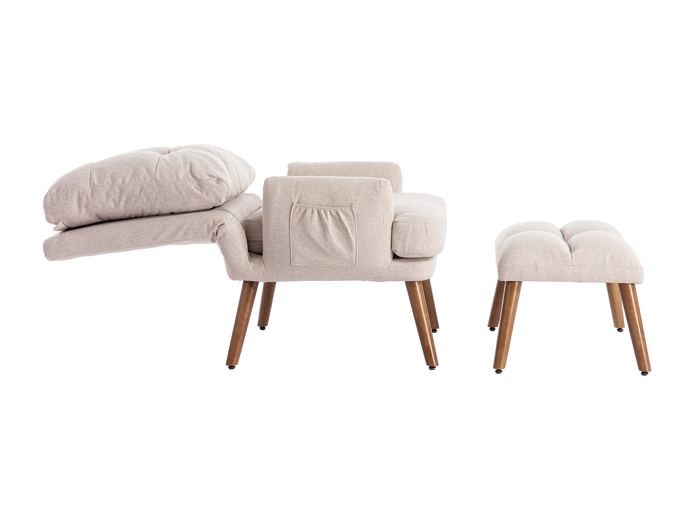 Relaxfauteuil met voetensteun - Verstelbare rugleuning in 5 standen - Beige katoen en linnen stof