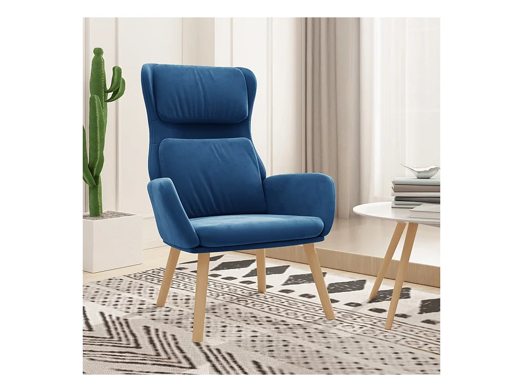Fluwelen fauteuil in eendenblauw met houten poten, collectie ENJOY. Scandinavische stijl.