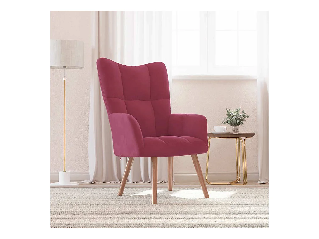 Stoel hoge rugleuning met knopen fluweel wijnrood