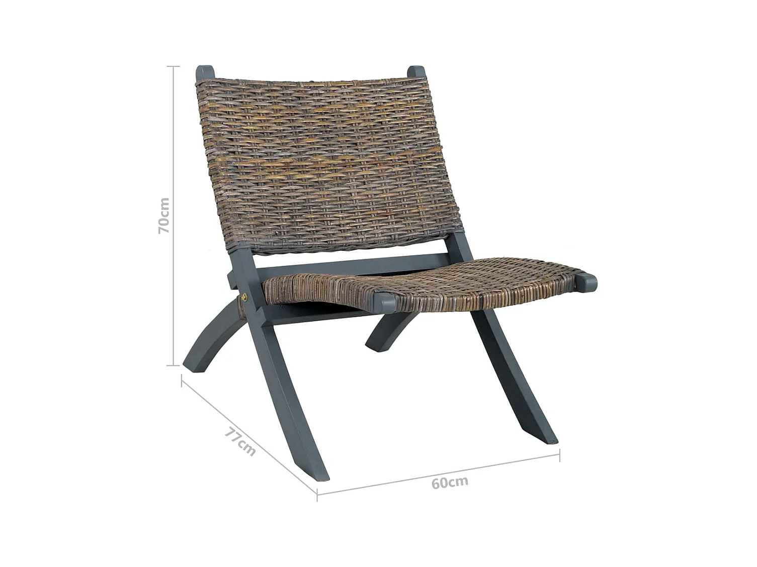 Relaxstoel natuurlijk kubu rattan en massief mahoniehout grijs