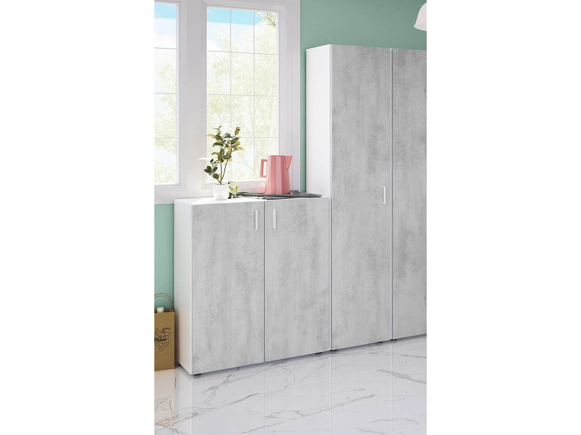 Dmora Multifunctionele Kast 1 Deur Reno 37x182h cm Grijs Beton 3 Planken Een deur, Deuropening