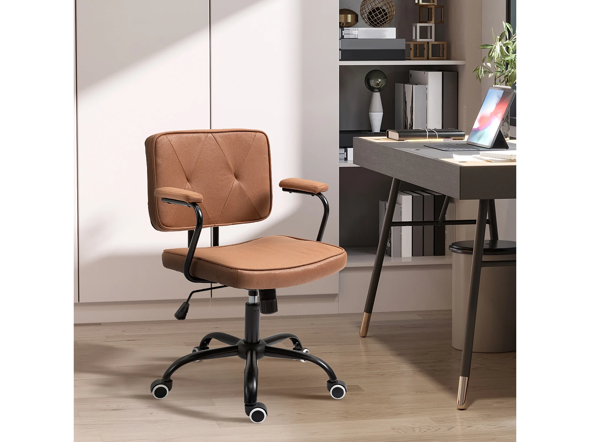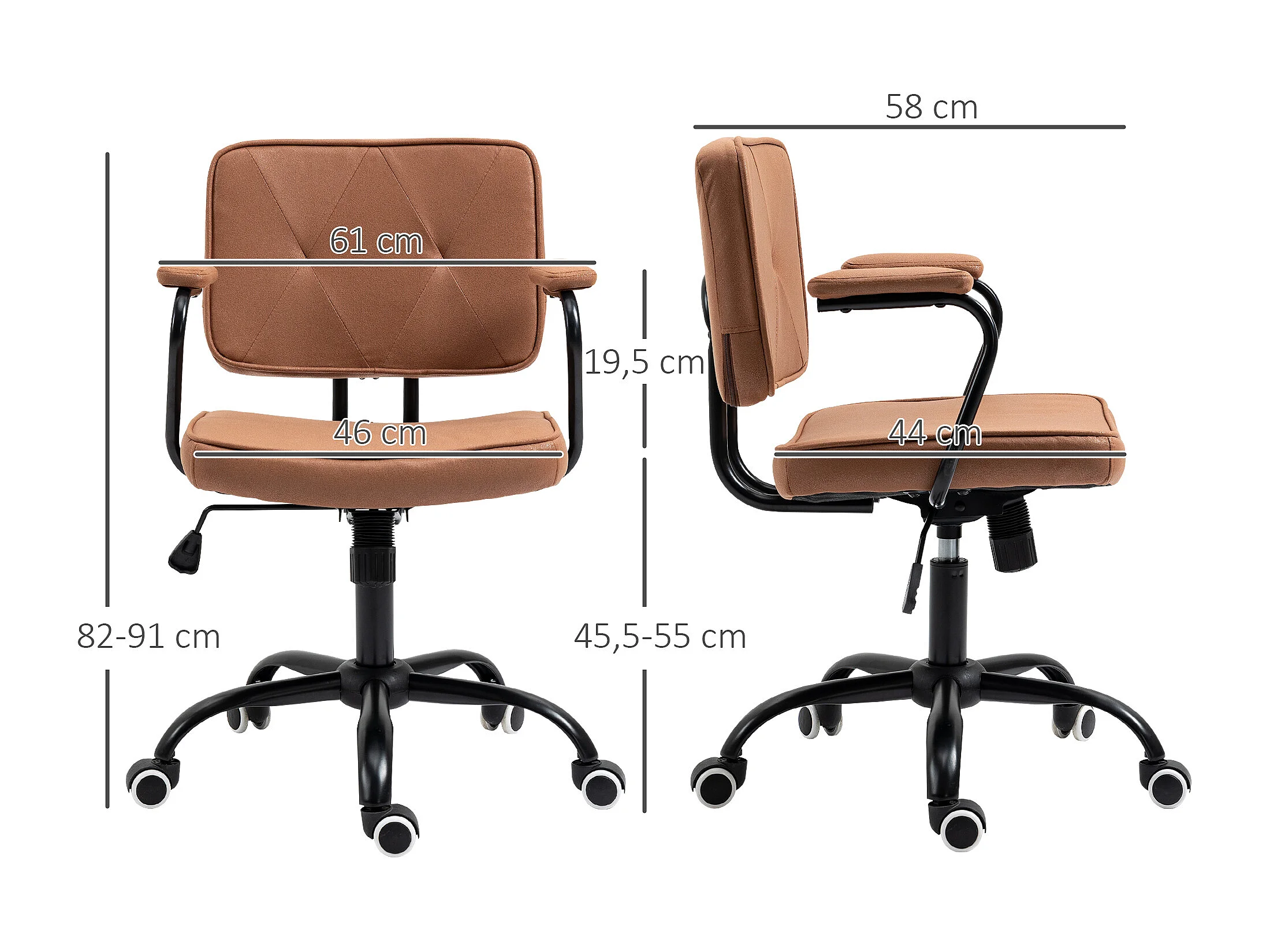 Retro bureaustoel, in hoogte verstelbaar, met schommelstoel, schuim, bruin (61x58x82-91 cm)