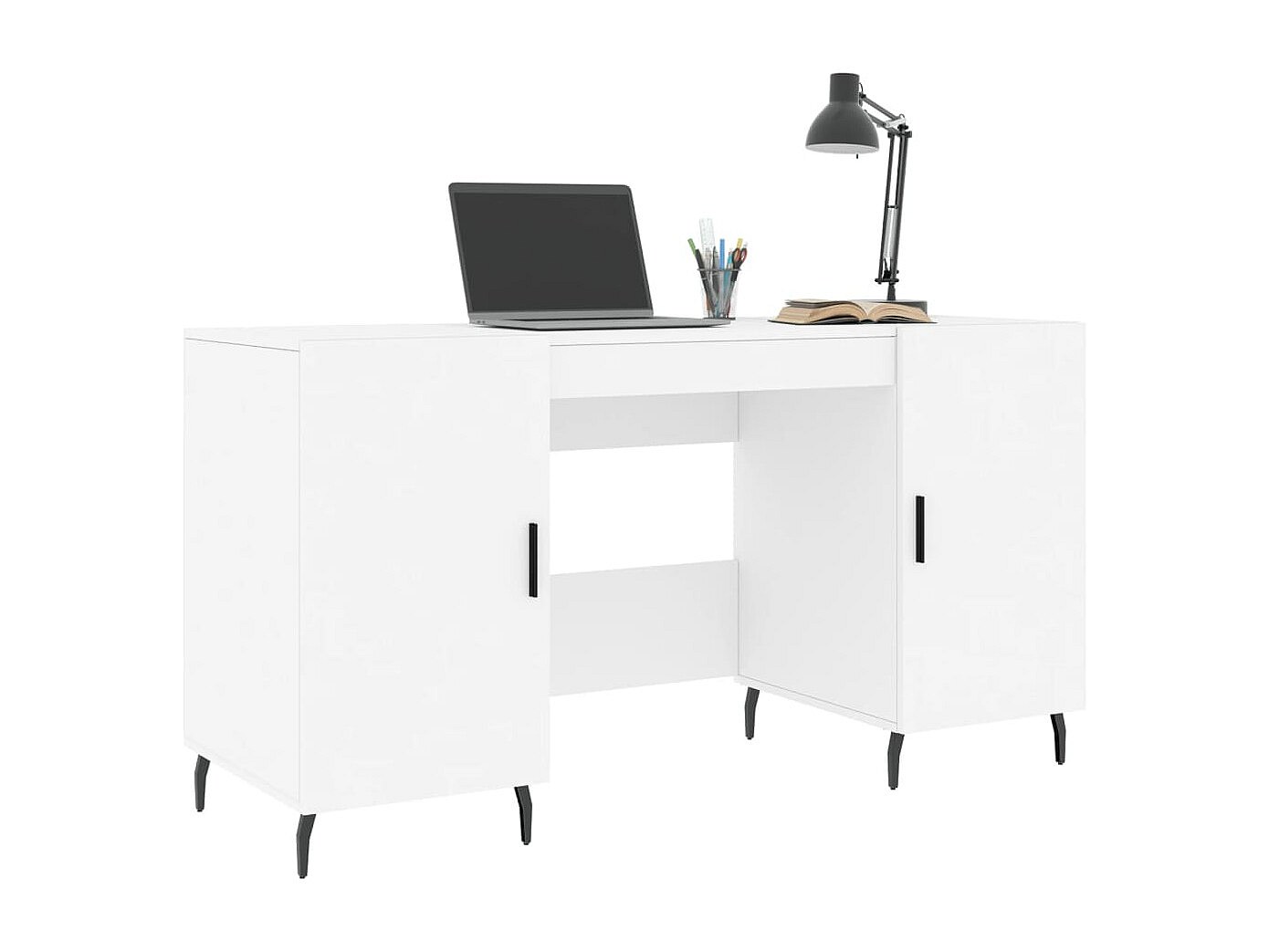 Hakan Bureau met kast bewerkt hout wit