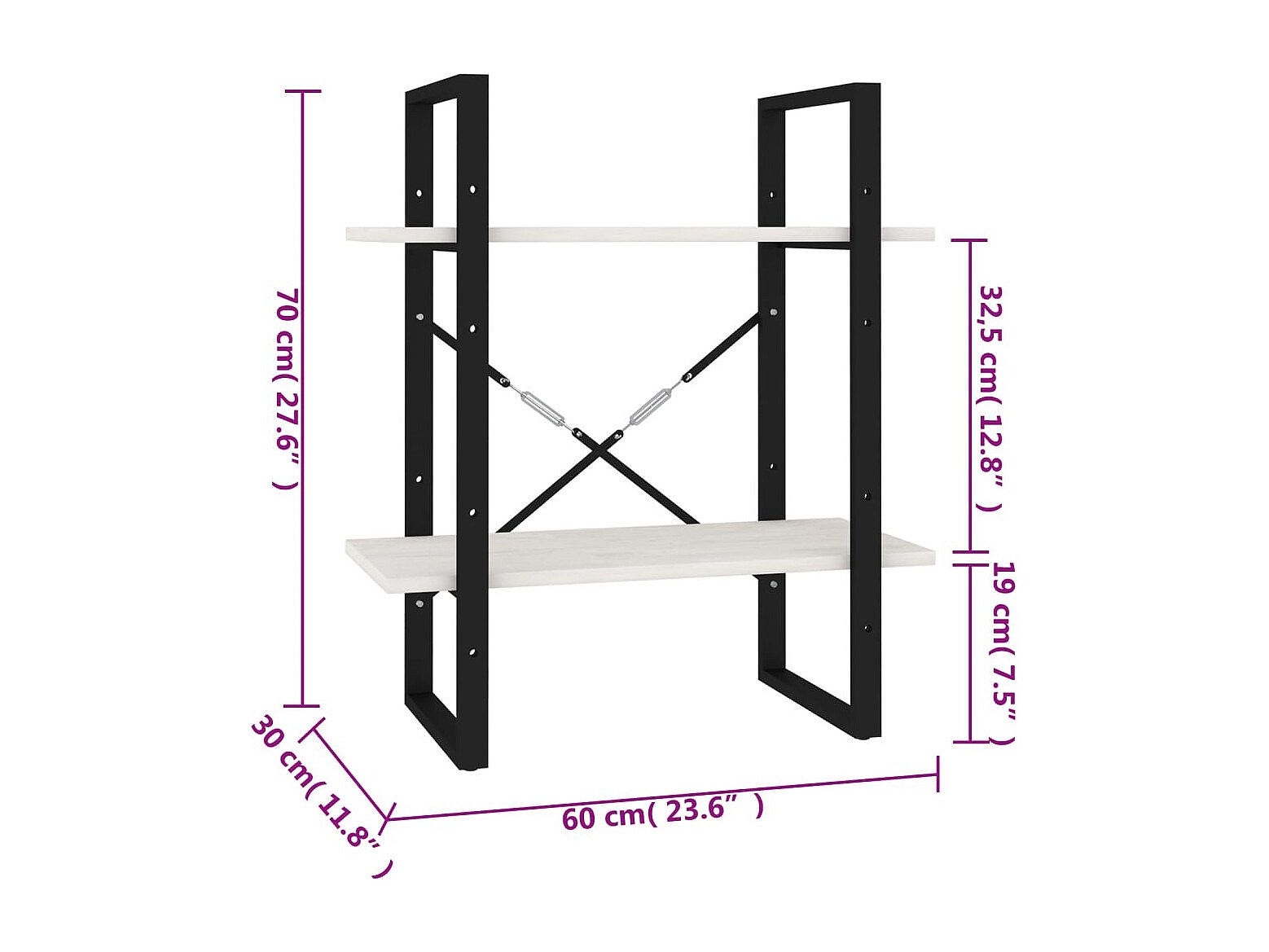 Gitana Boekenkast met 2 schappen 100x30x70 cm massief grenenhout wit