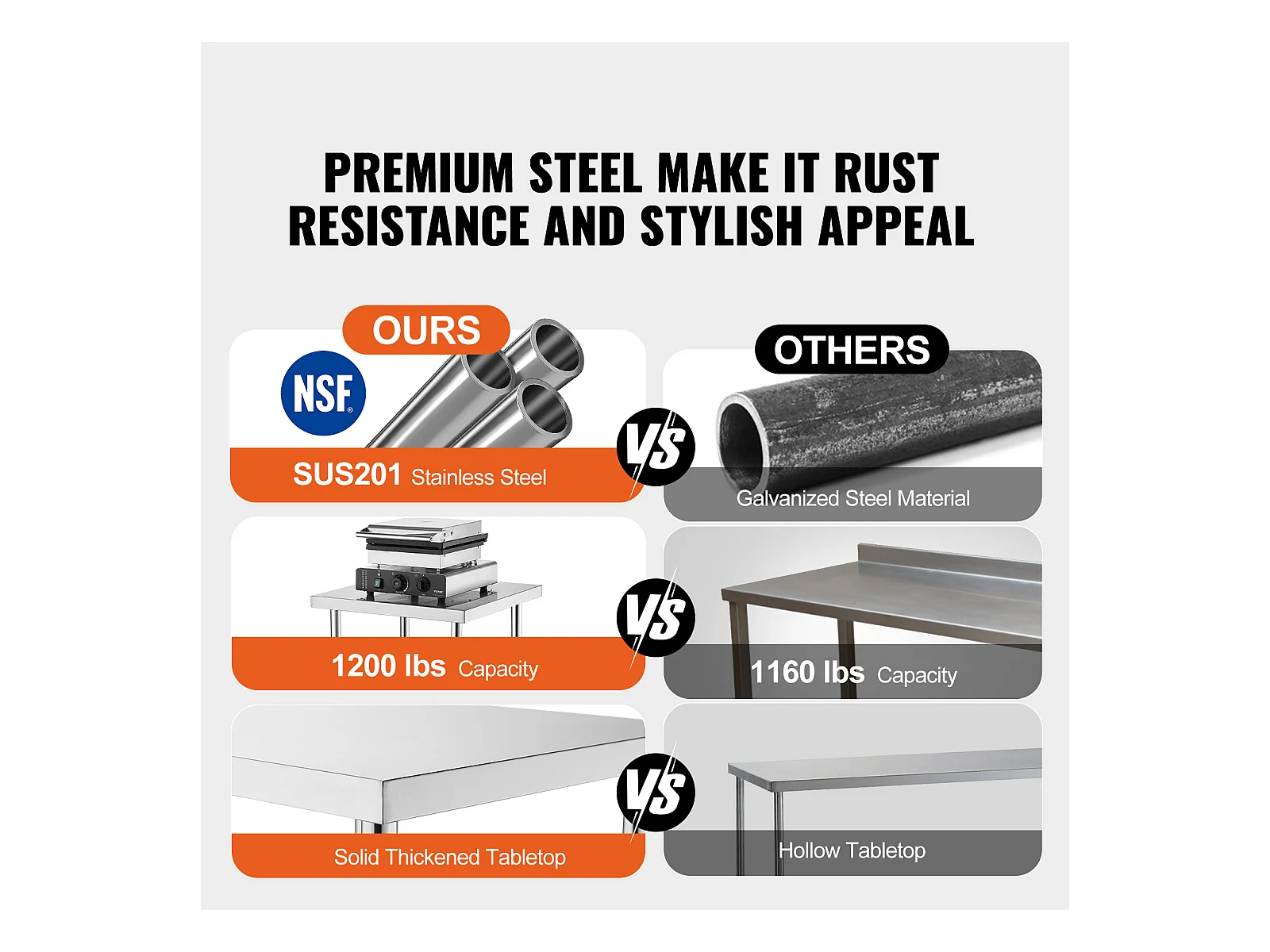 Roestvrij Stalen Werktafel SucceBuy, 610 x 711 x 660 mm, Commerciële Tafel voor Voedselbereiding in Restaurant