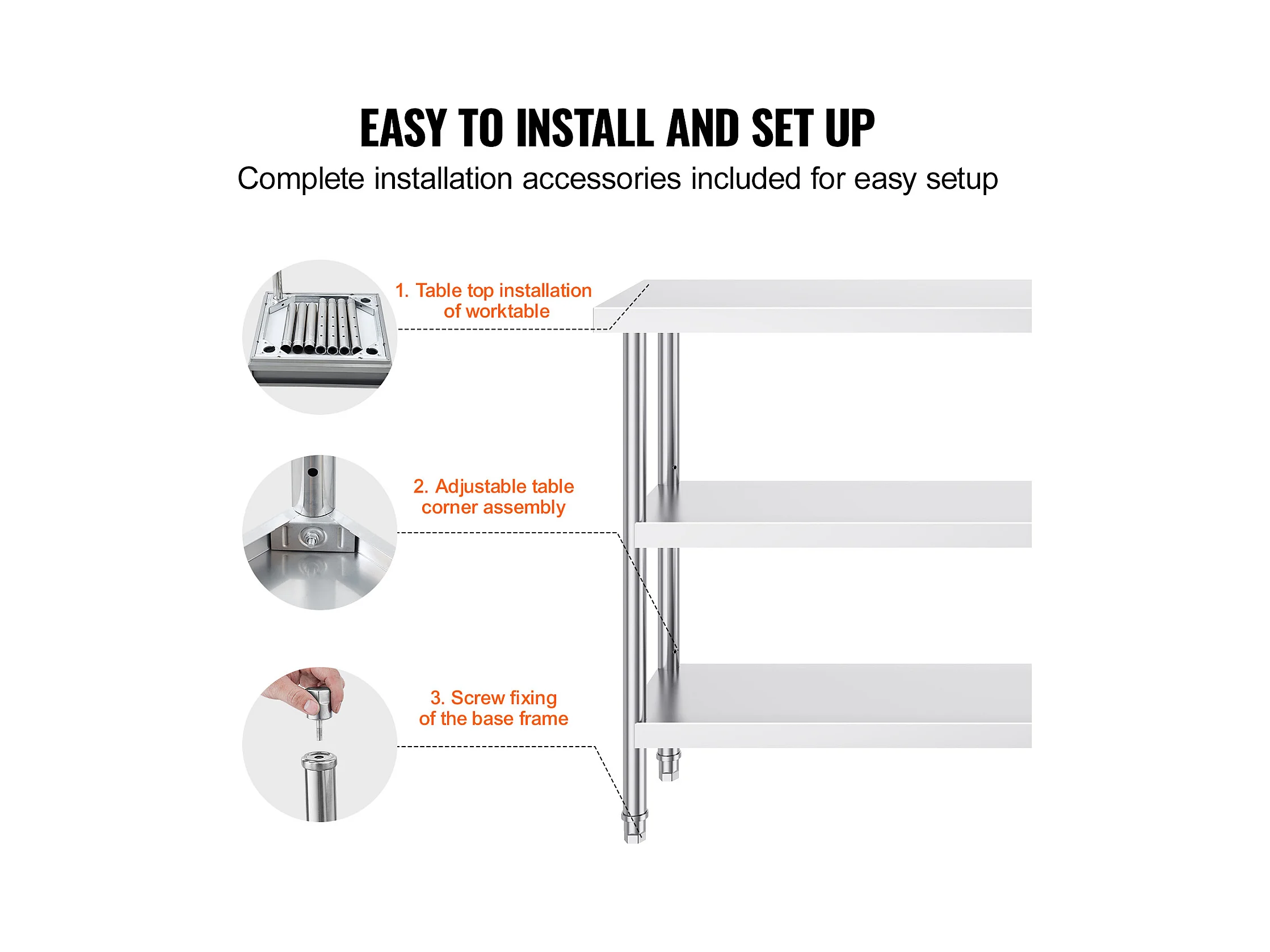 Roestvrijstalen Werktafel SucceBuy, 61 x 45,7 x 86,4 cm, Commercieel Voedselwerkstation