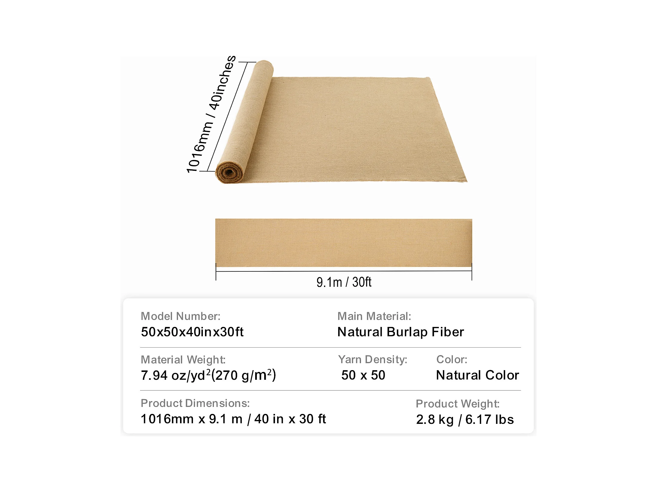 Rol Hessian Stof SucceBuy, 1016 mm x 9,1 m, Voor Handwerk en Planten