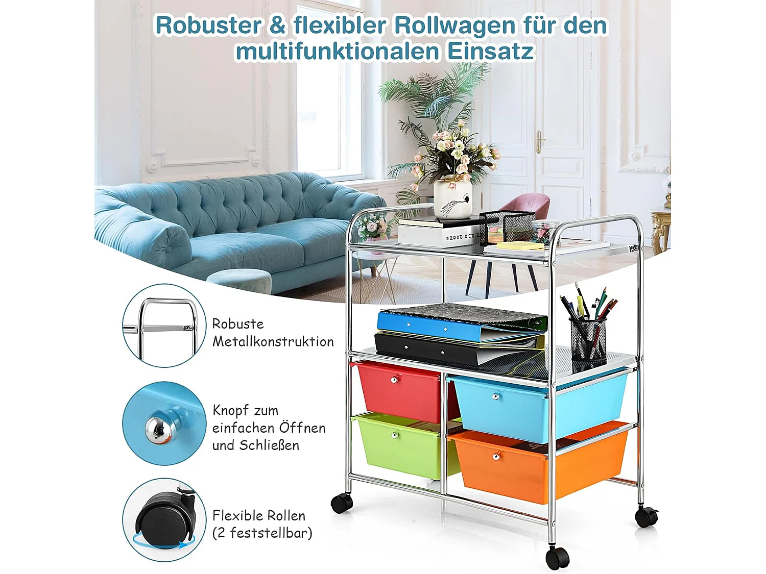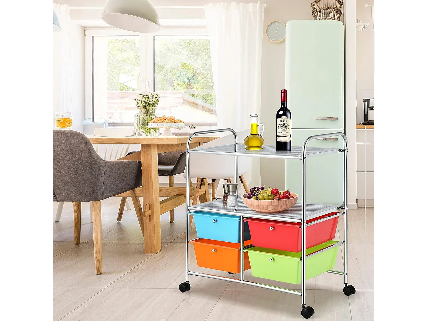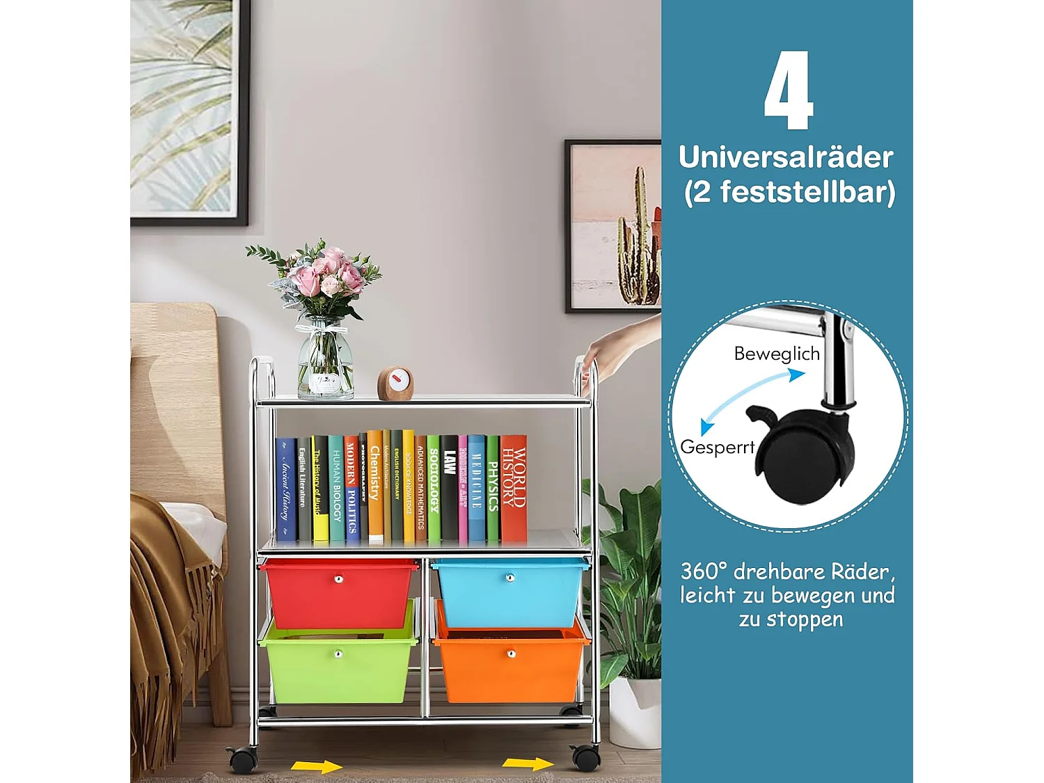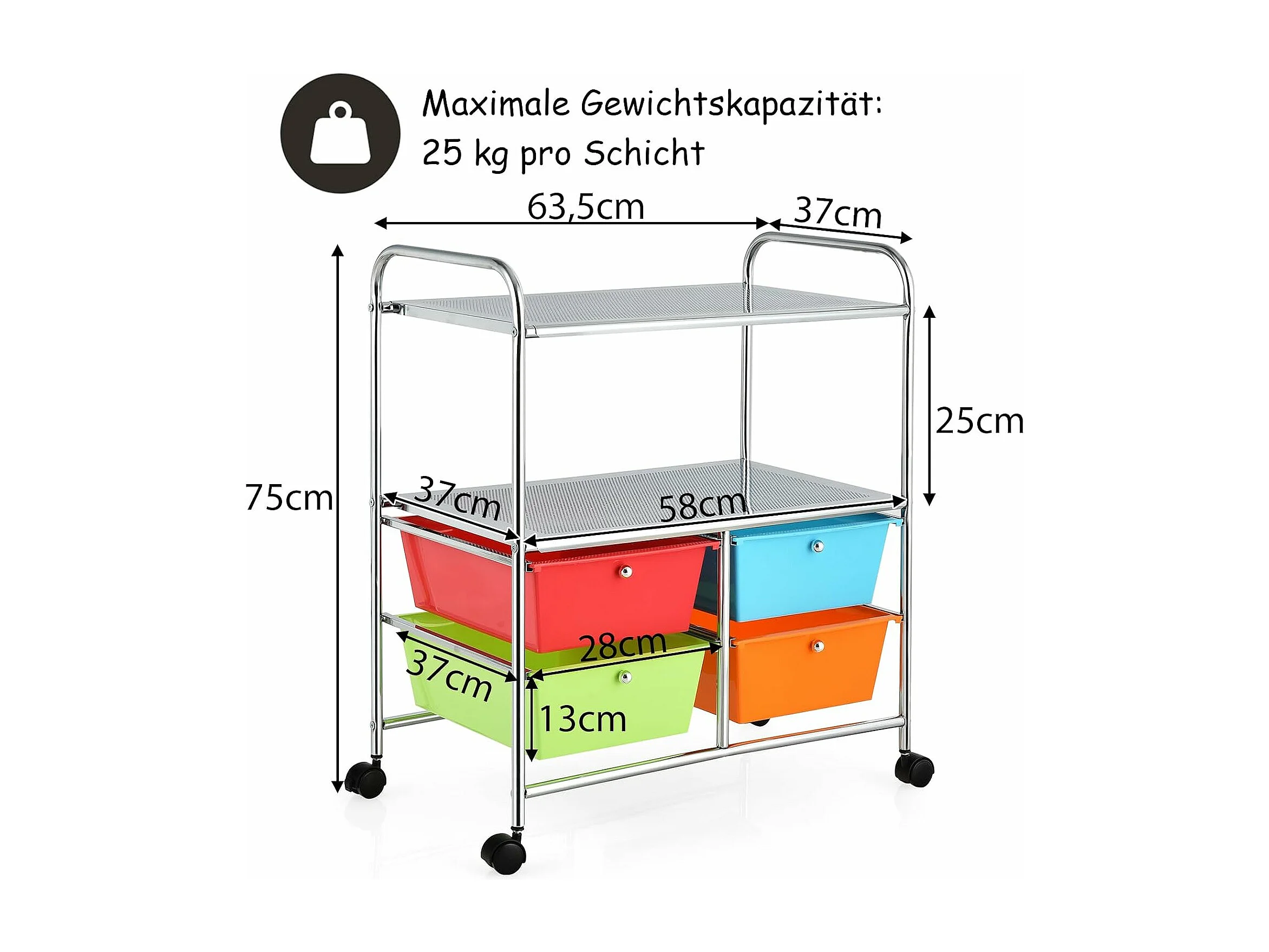 Rolwagen met 4 stapelbare laden, ladewagen, rolcontainer met metalen frame en legplanken, badkamerrolwagen, opbergwagen voor kantoor, woonkamerTI76292