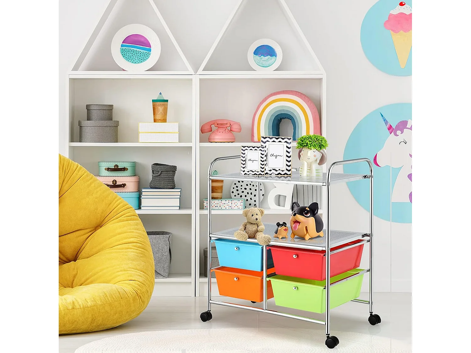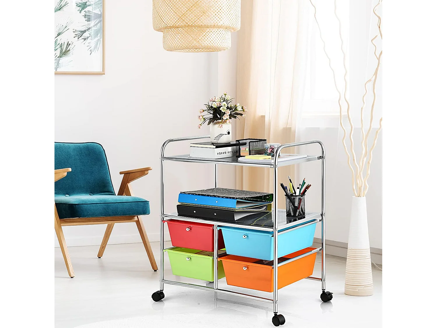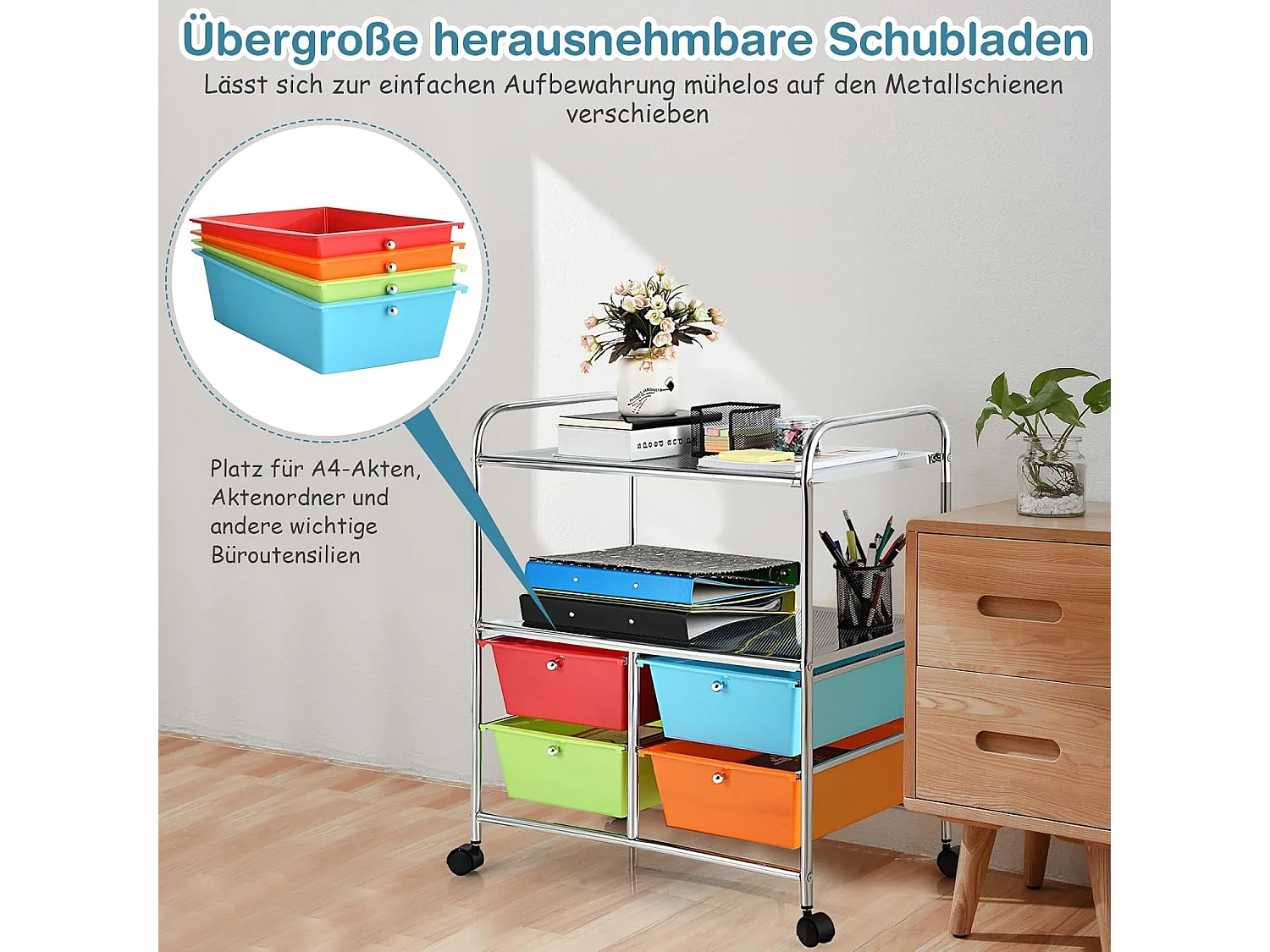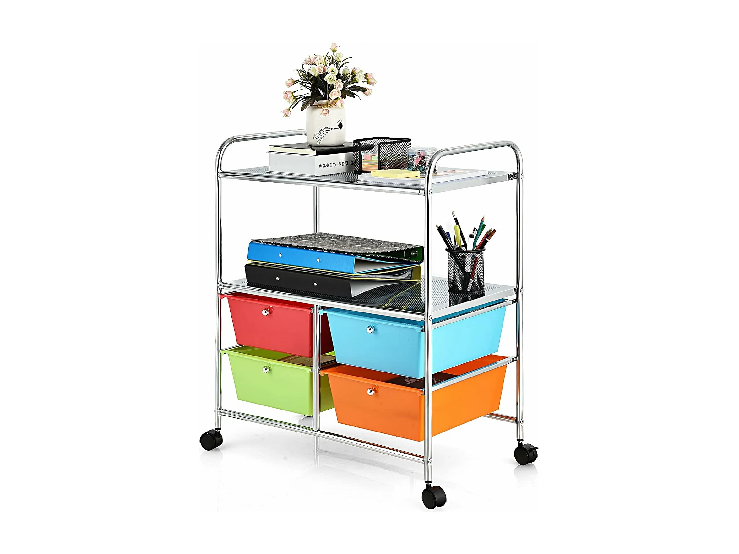 Rolwagen met 4 stapelbare laden, ladewagen, rolcontainer met metalen frame en legplanken, badkamerrolwagen, opbergwagen voor kantoor, woonkamerTI76292