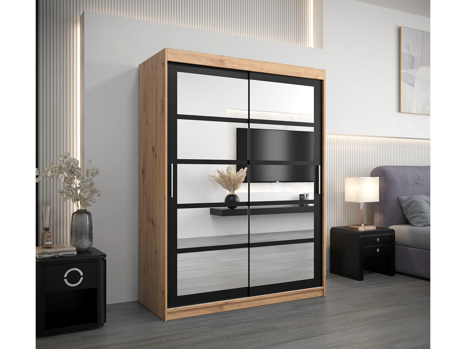 Maroko kledingkast met schuifdeuren 200/150/62 2 deuren (artisan/zwart)