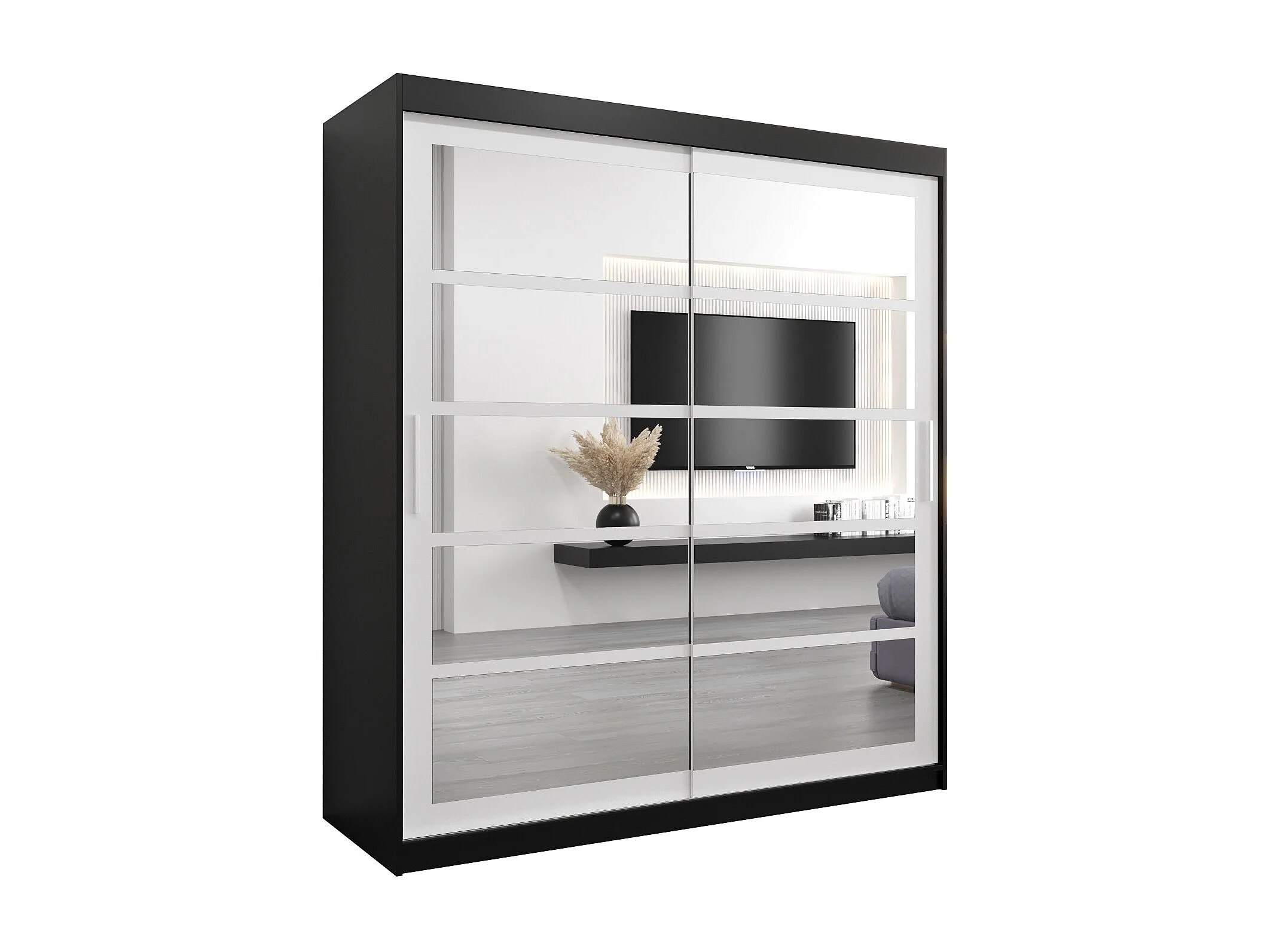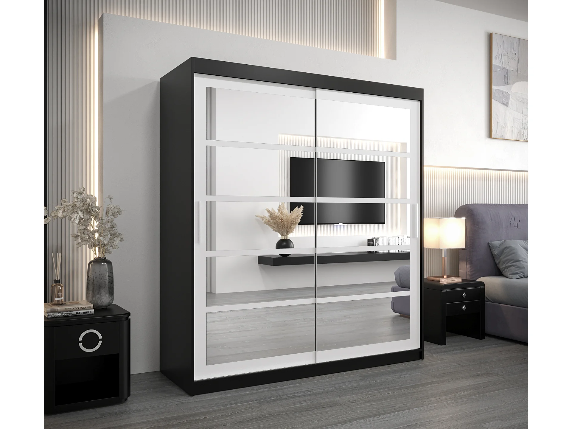 Roma 2 kledingkast met schuifdeuren 200/180/62 2 deuren (zwart/wit)