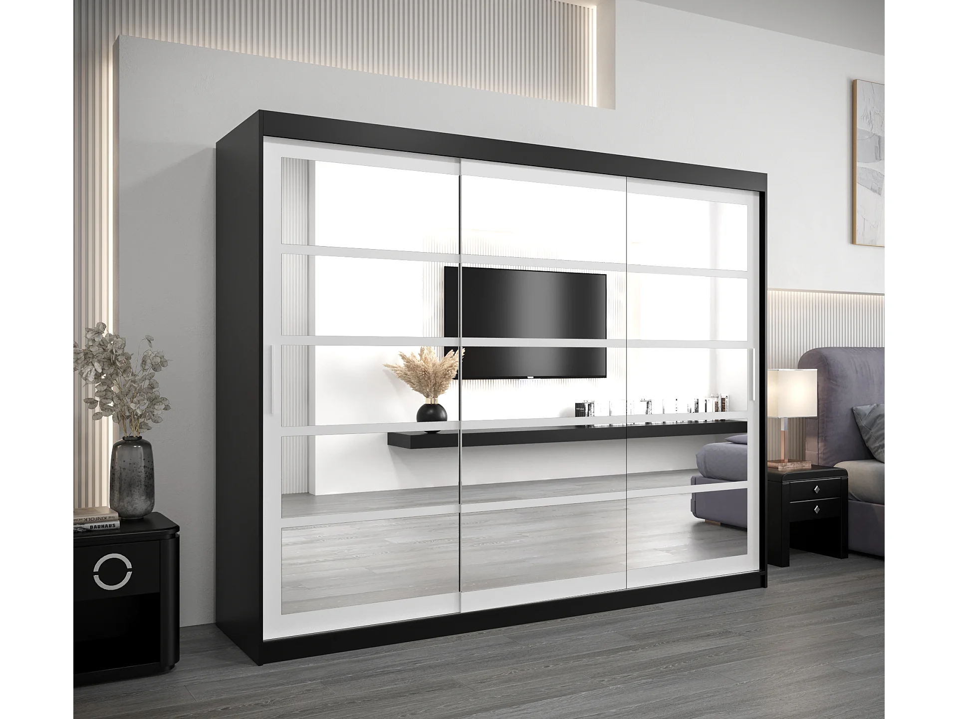 Elypse kledingkast met schuifdeuren 200/250/62 3 deuren (zwart/wit)