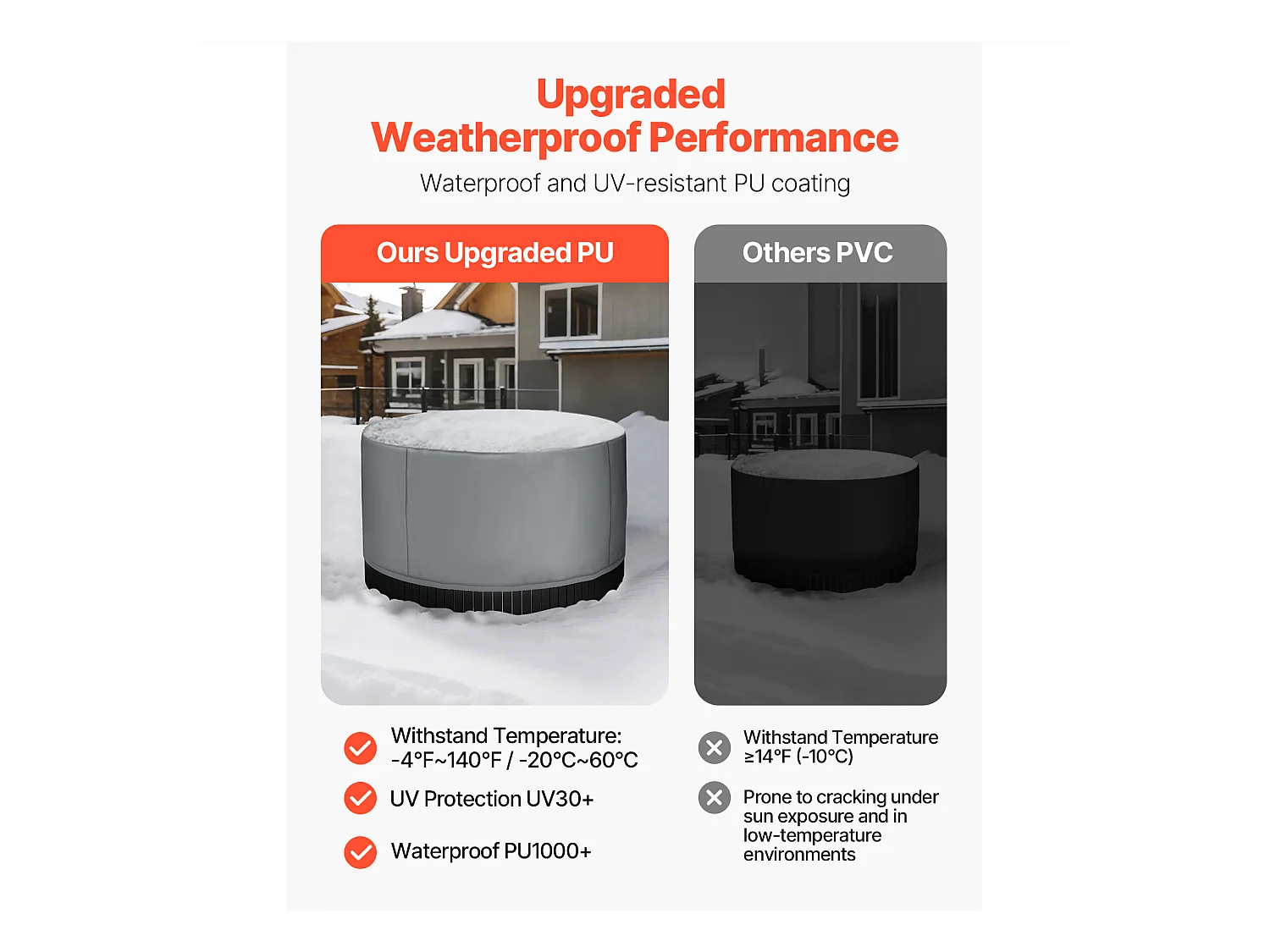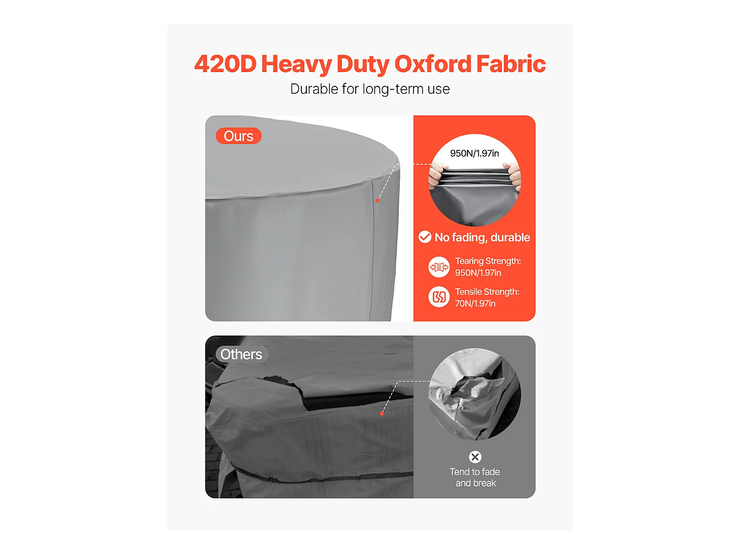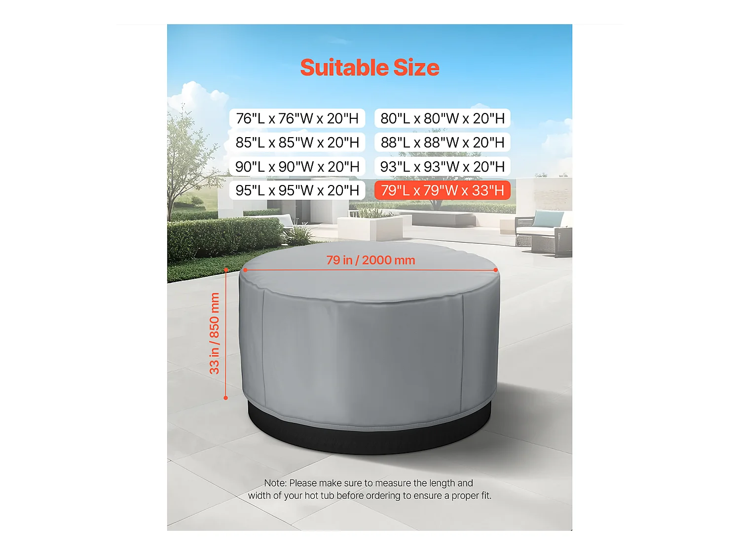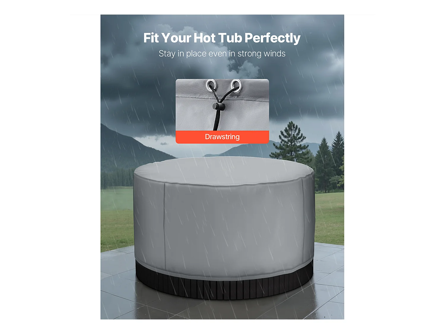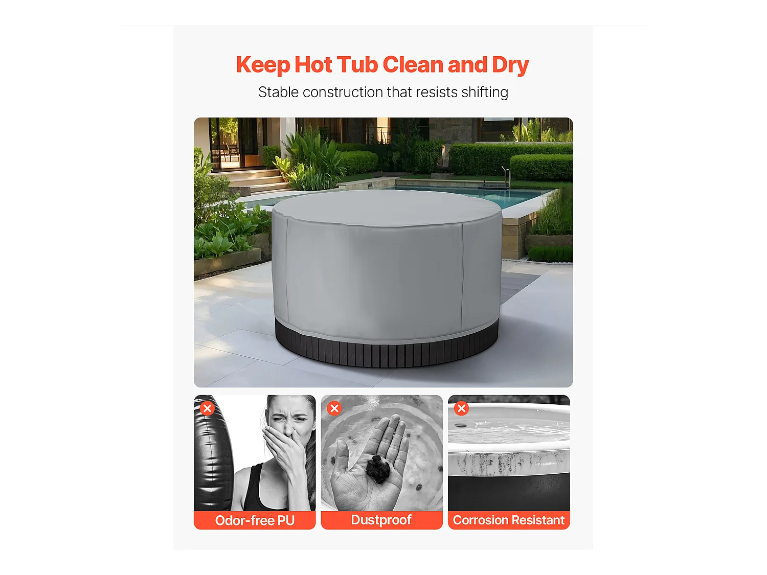 Ronde Afdekking SucceBuy voor Spa, φ200 x 85 cm, Weer- en Waterbestendig, Ultrasterk 420D Oxford-weefsel en Scheurweerstand 950N, Grijs