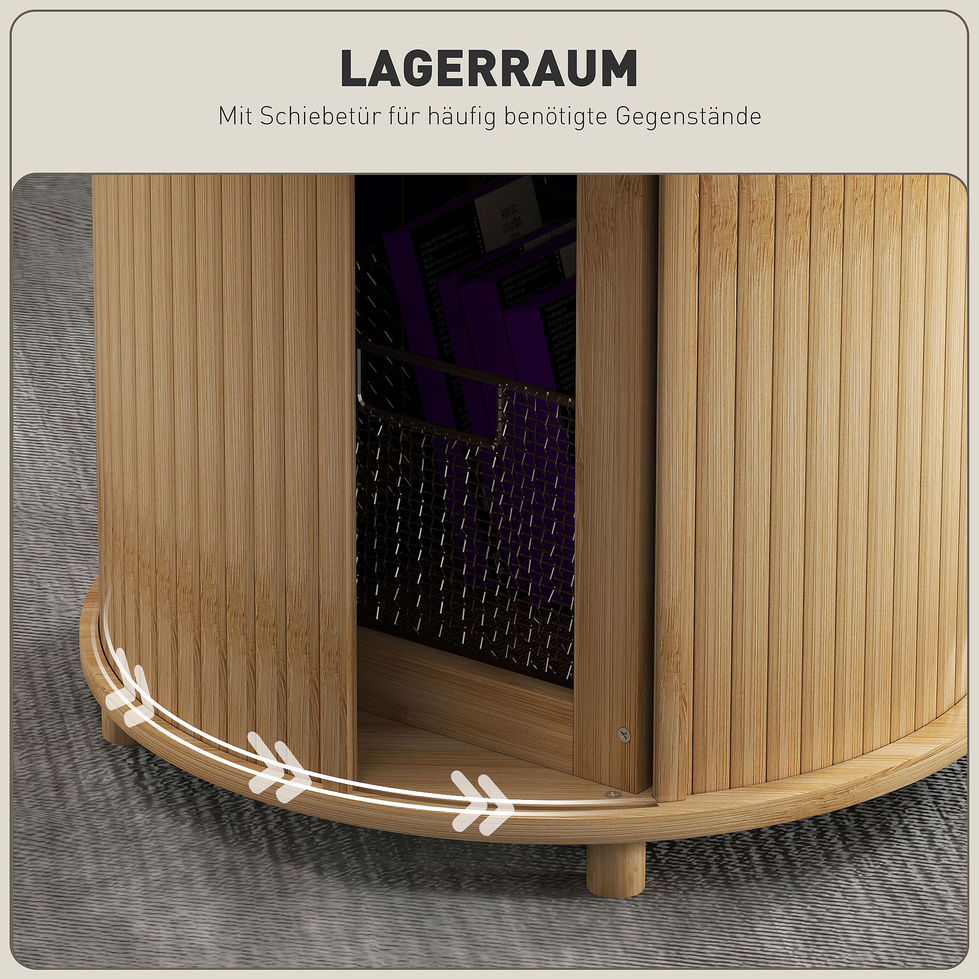 Ronde bamboe salontafel met verborgen opbergruimte en schuifdeur, modern design, naturel (Ø60x45 cm)