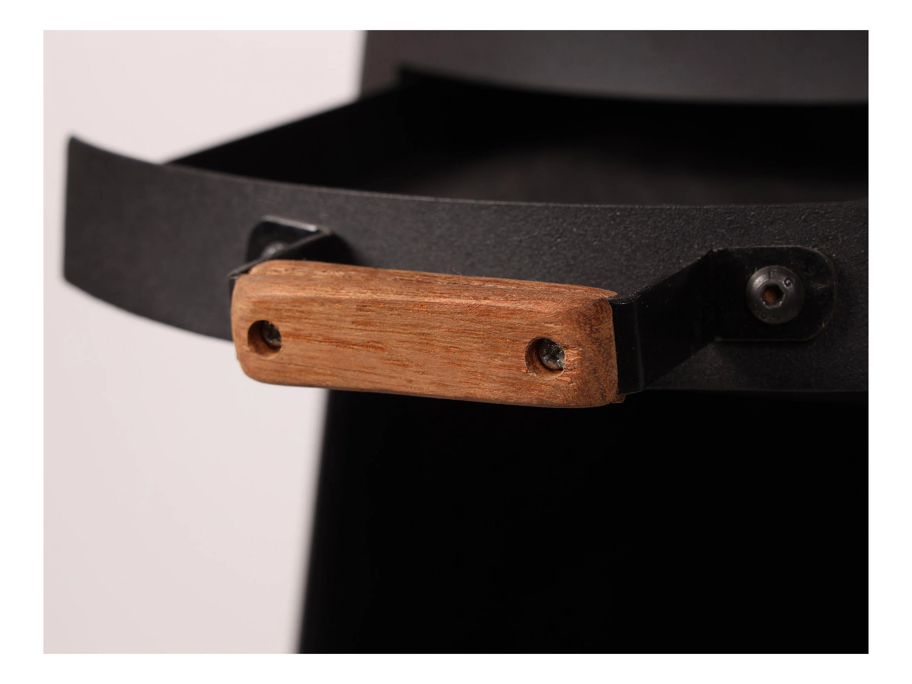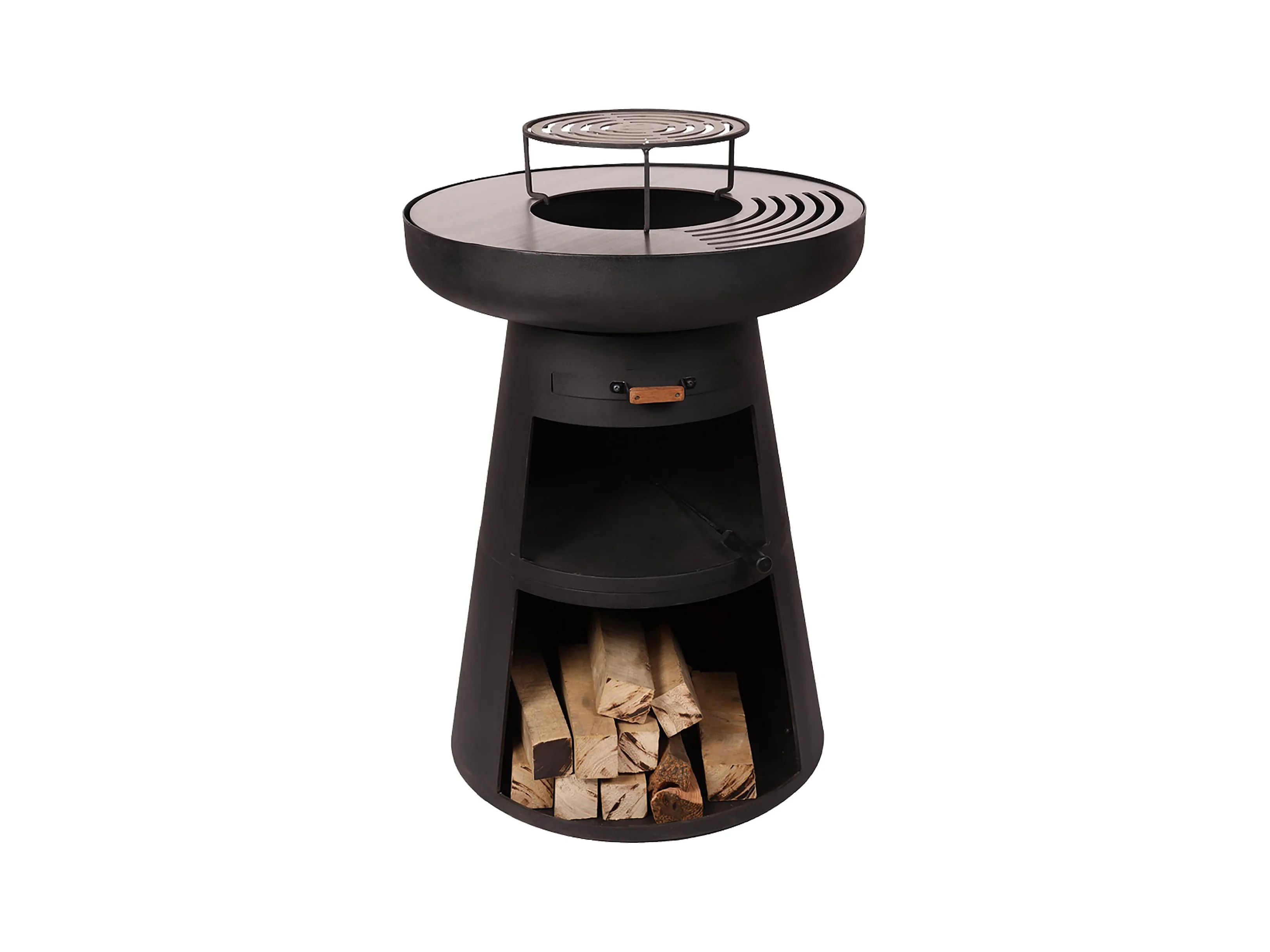 Ronde barbecue met stalen bakplaat en grillplaat en houten plank