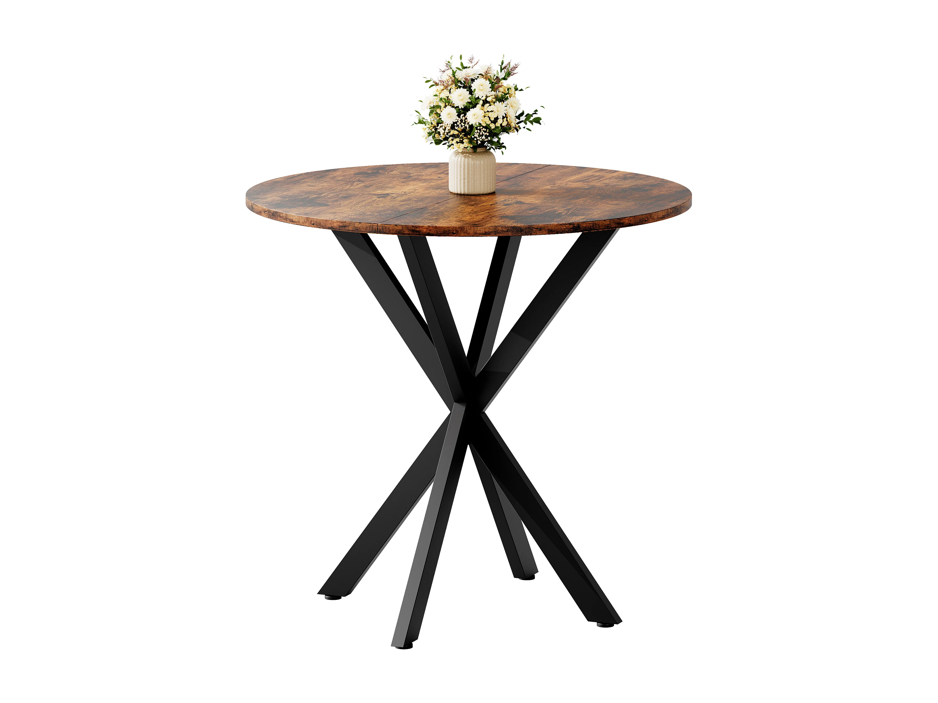 Ronde eettafel 80 cm - Vintage bruine kleur - Voor keuken en woonkamer