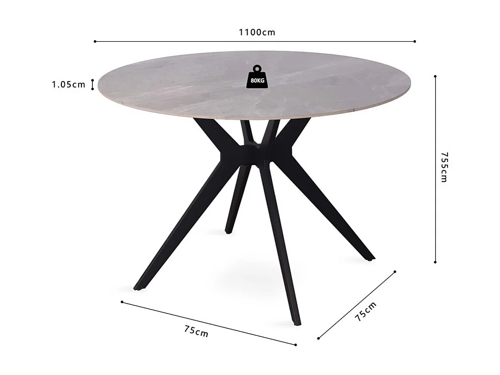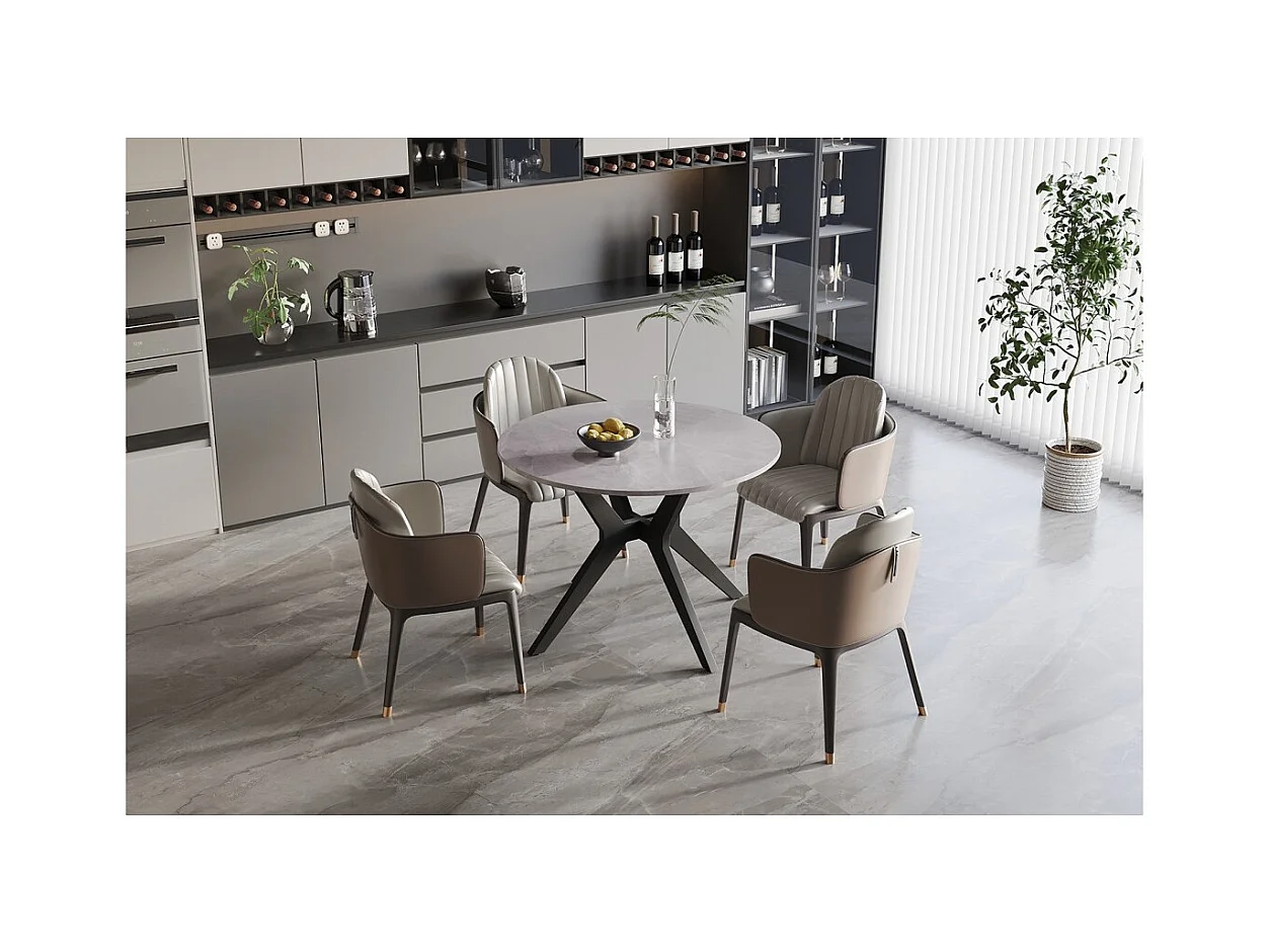 Ronde eettafel ARVENA – 110 cm – Blad van gesinterde steen – Kleur grijs – Eigentijds en robuust ontwerp