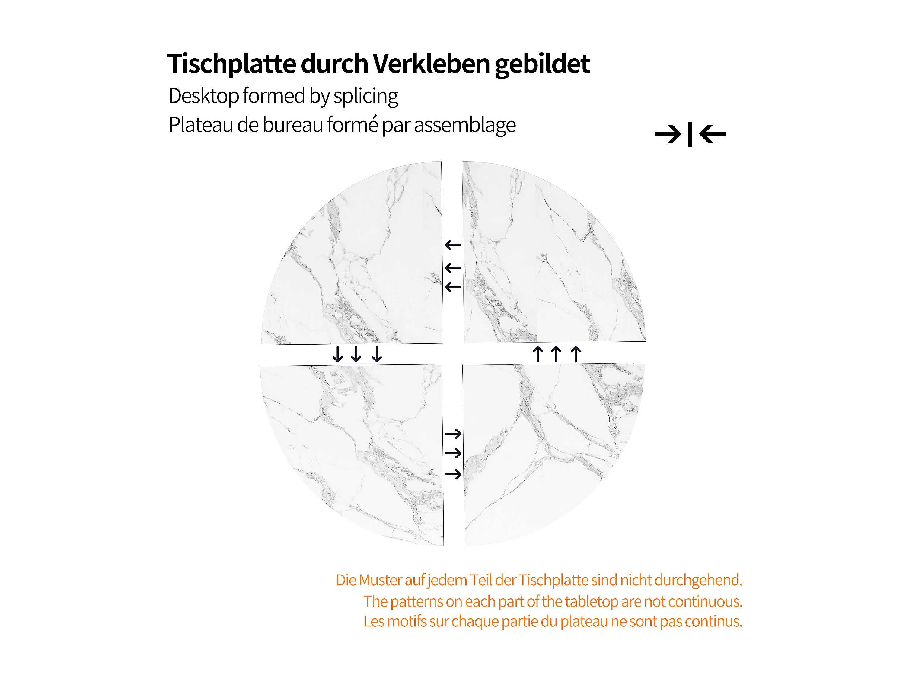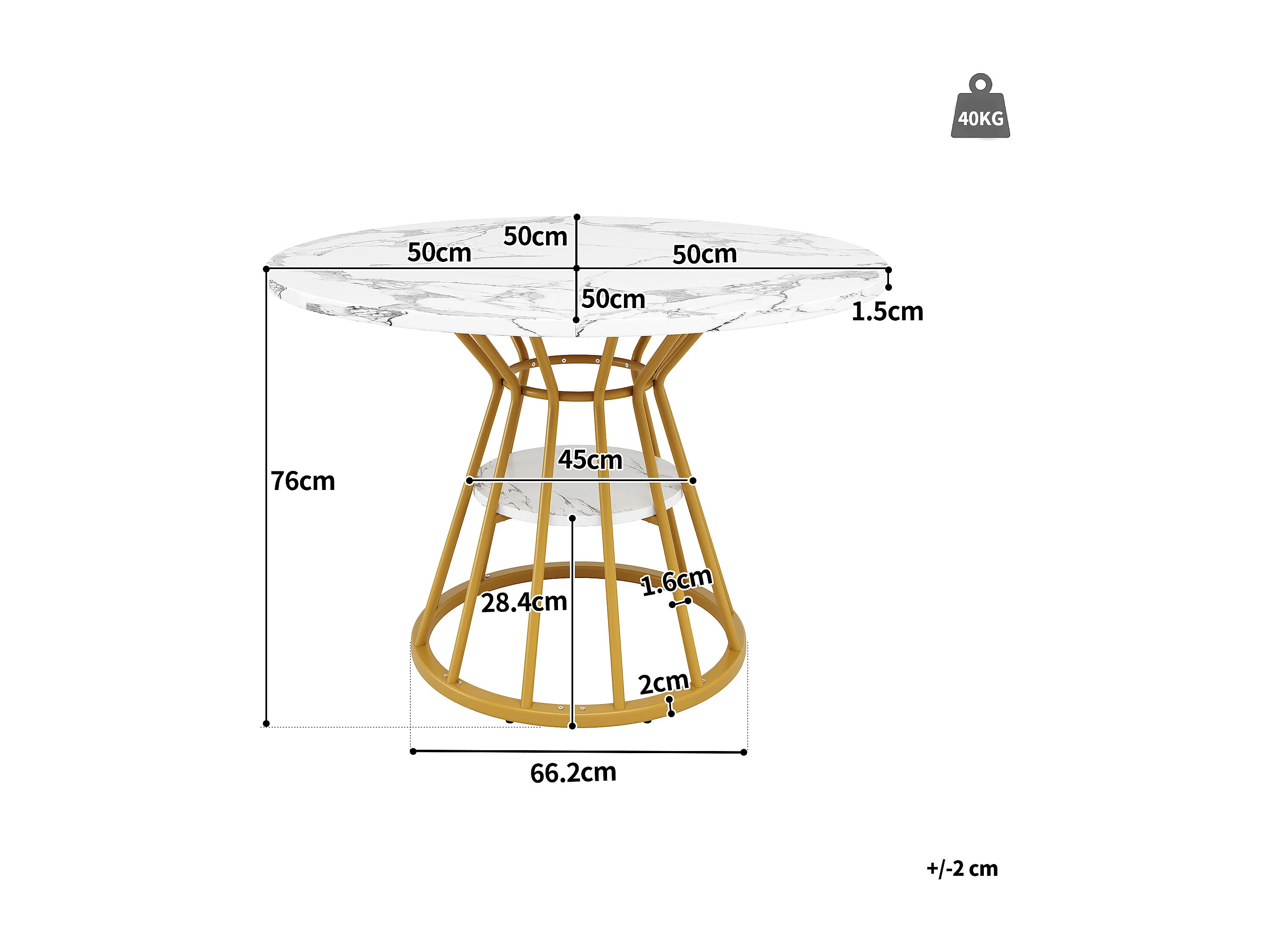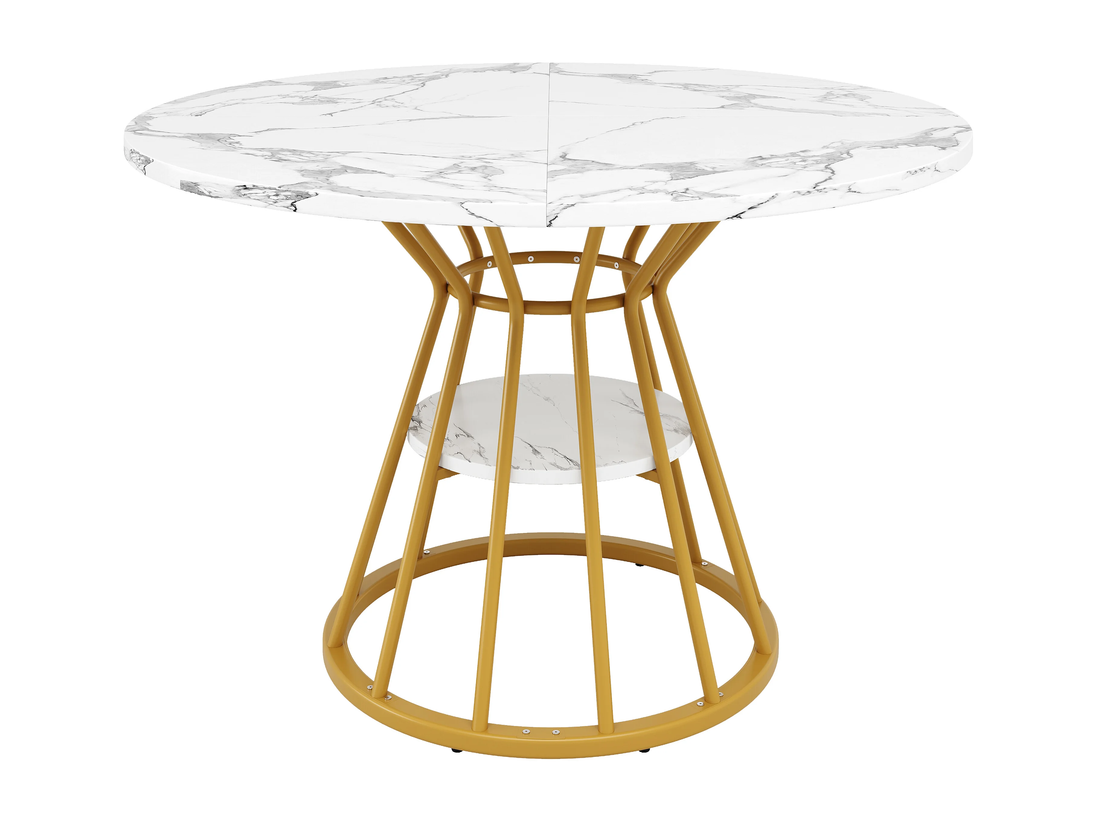Ronde eettafel met blad in marmerlook - Gouden metalen poten - Wit