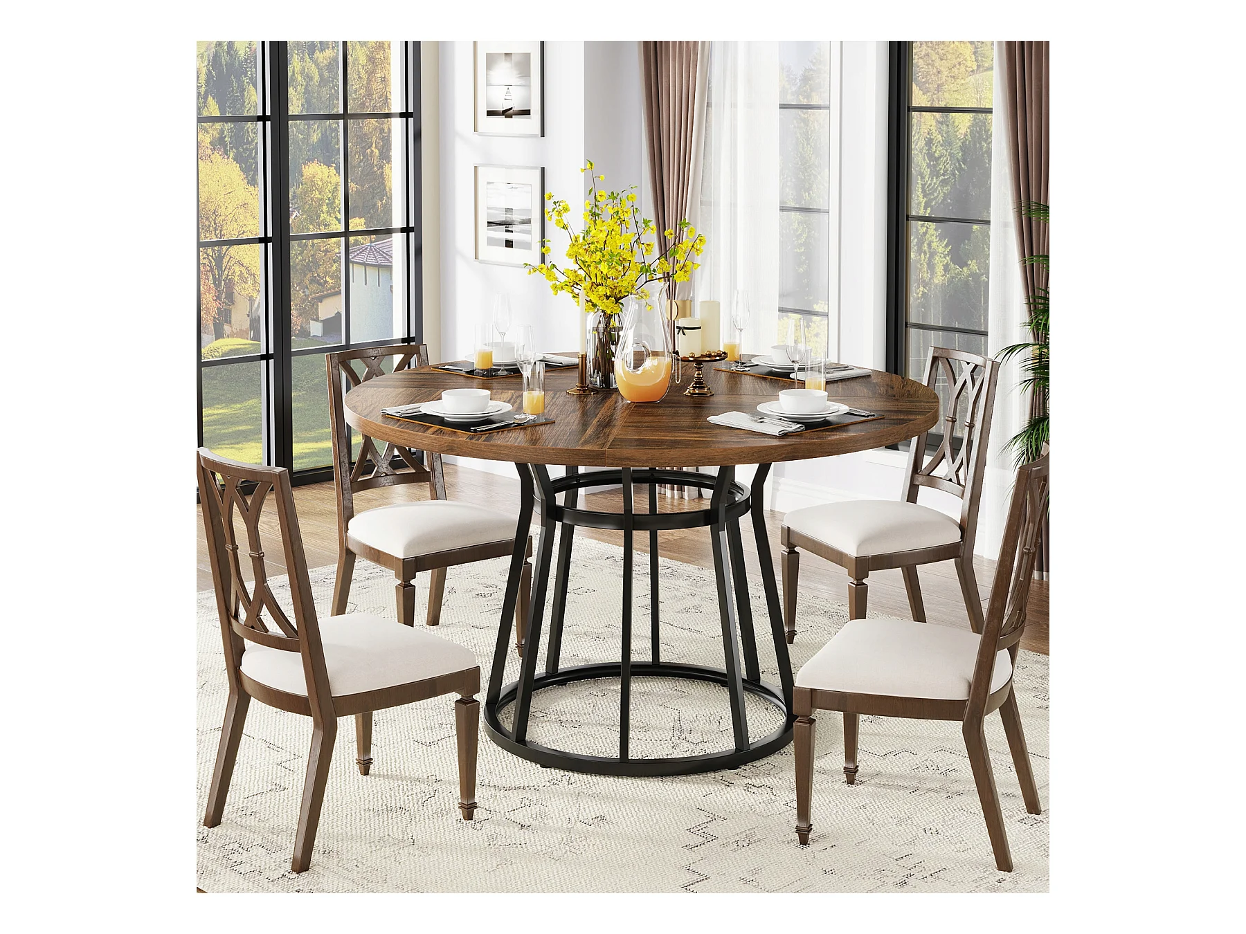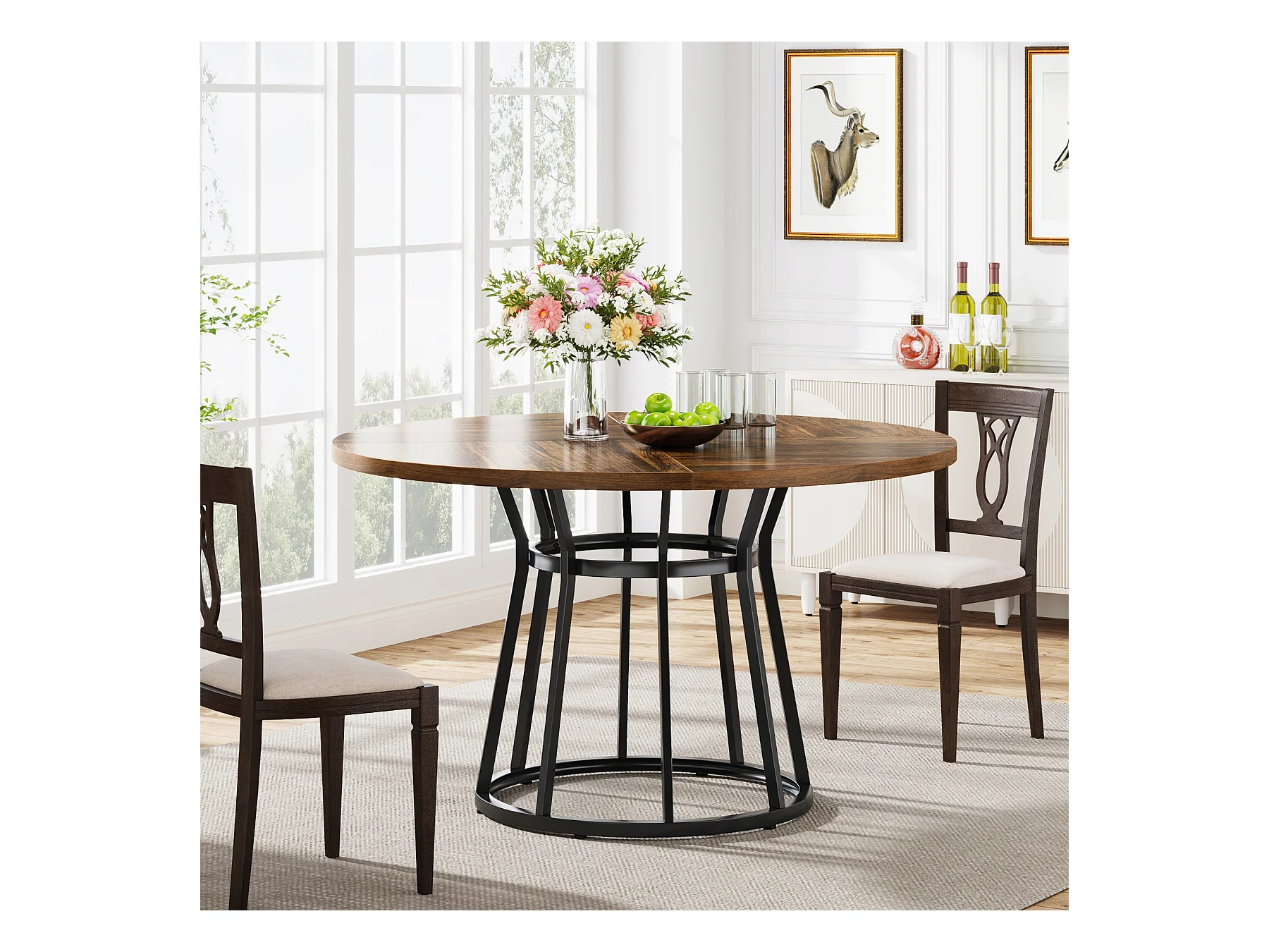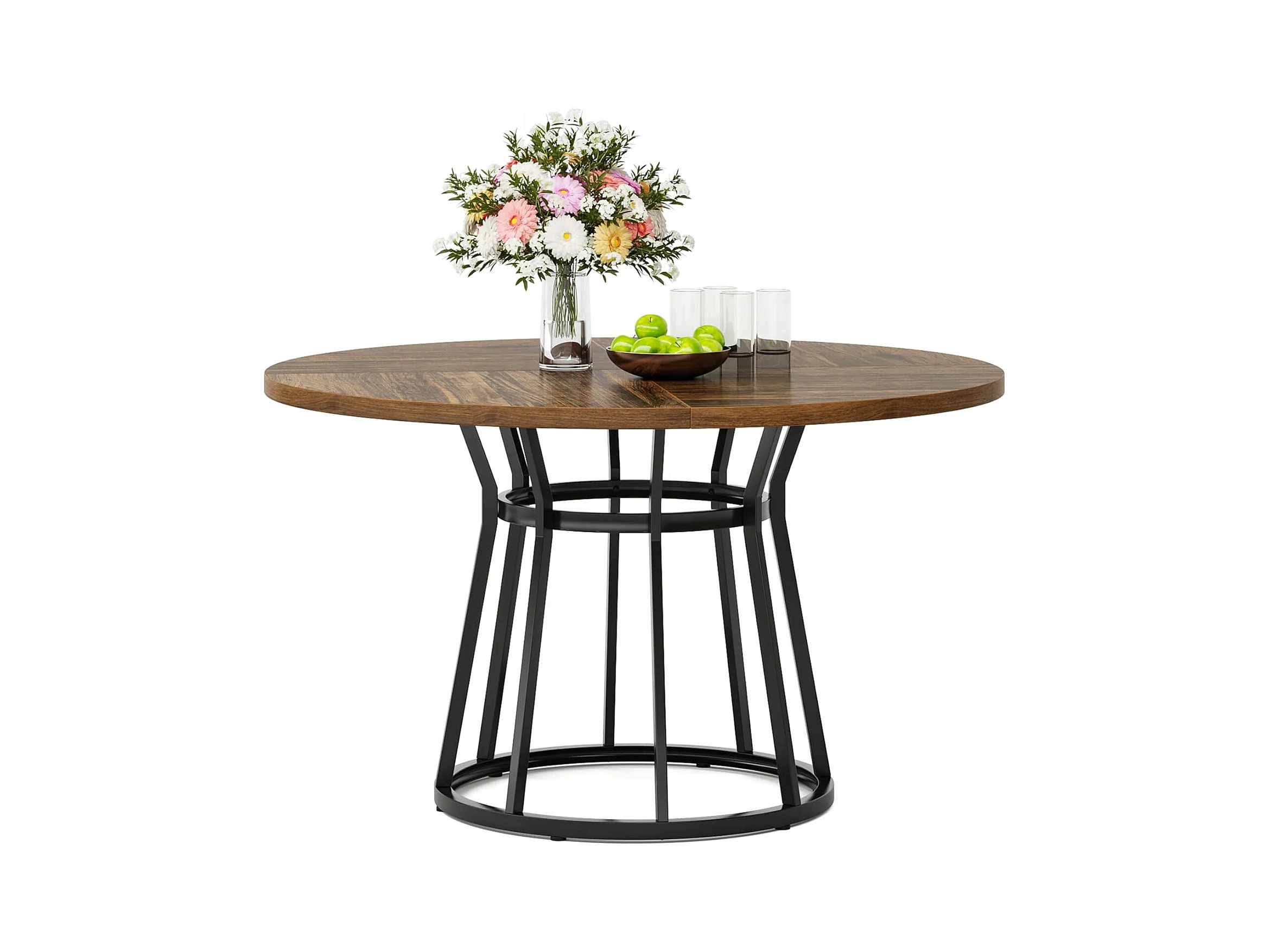 Ronde eettafel voor keuken, eetkamer, woonkamer, 120 cm, 4 zitplaatsen, rustiek bruin (alleen tafel)