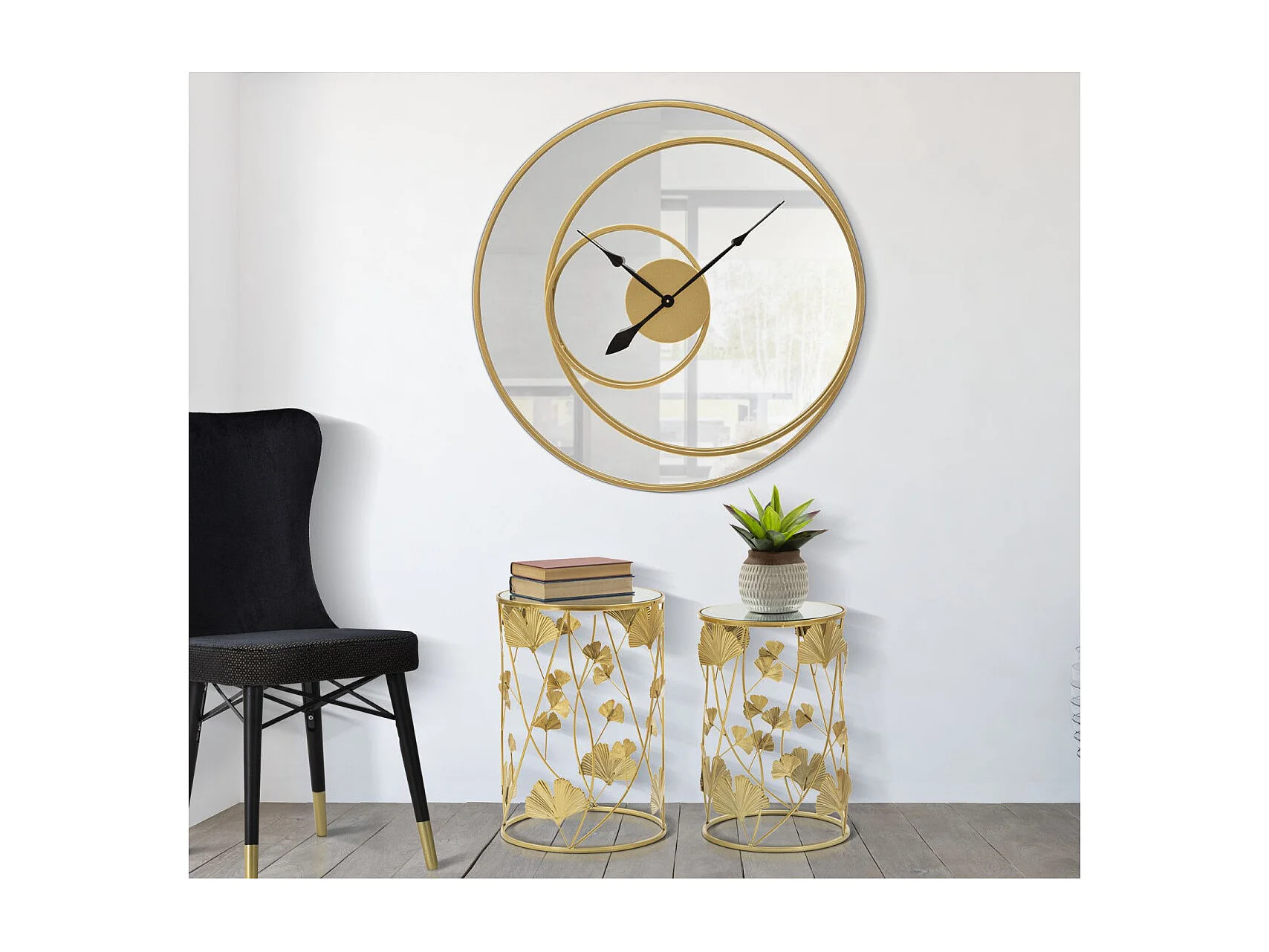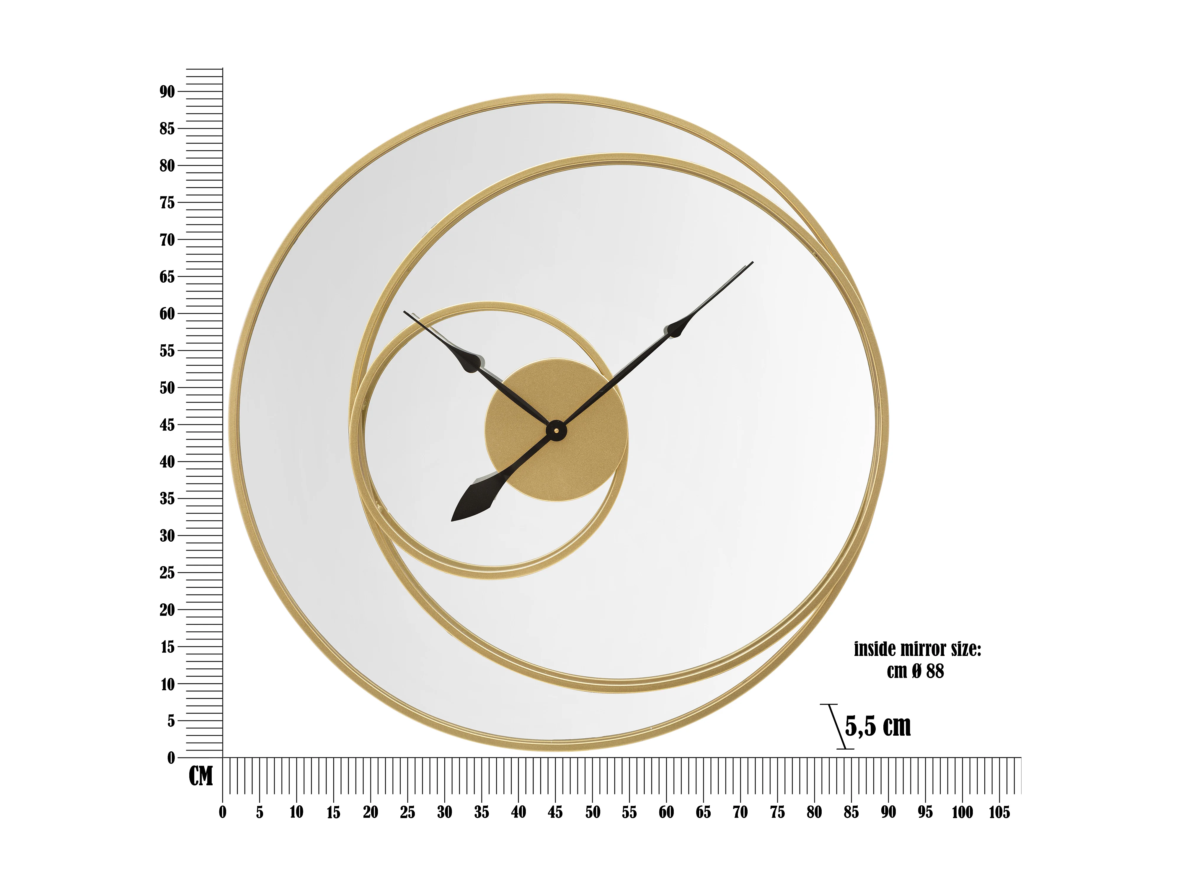 Ronde gouden metalen wandspiegelklok Ø 90x5,5 cm