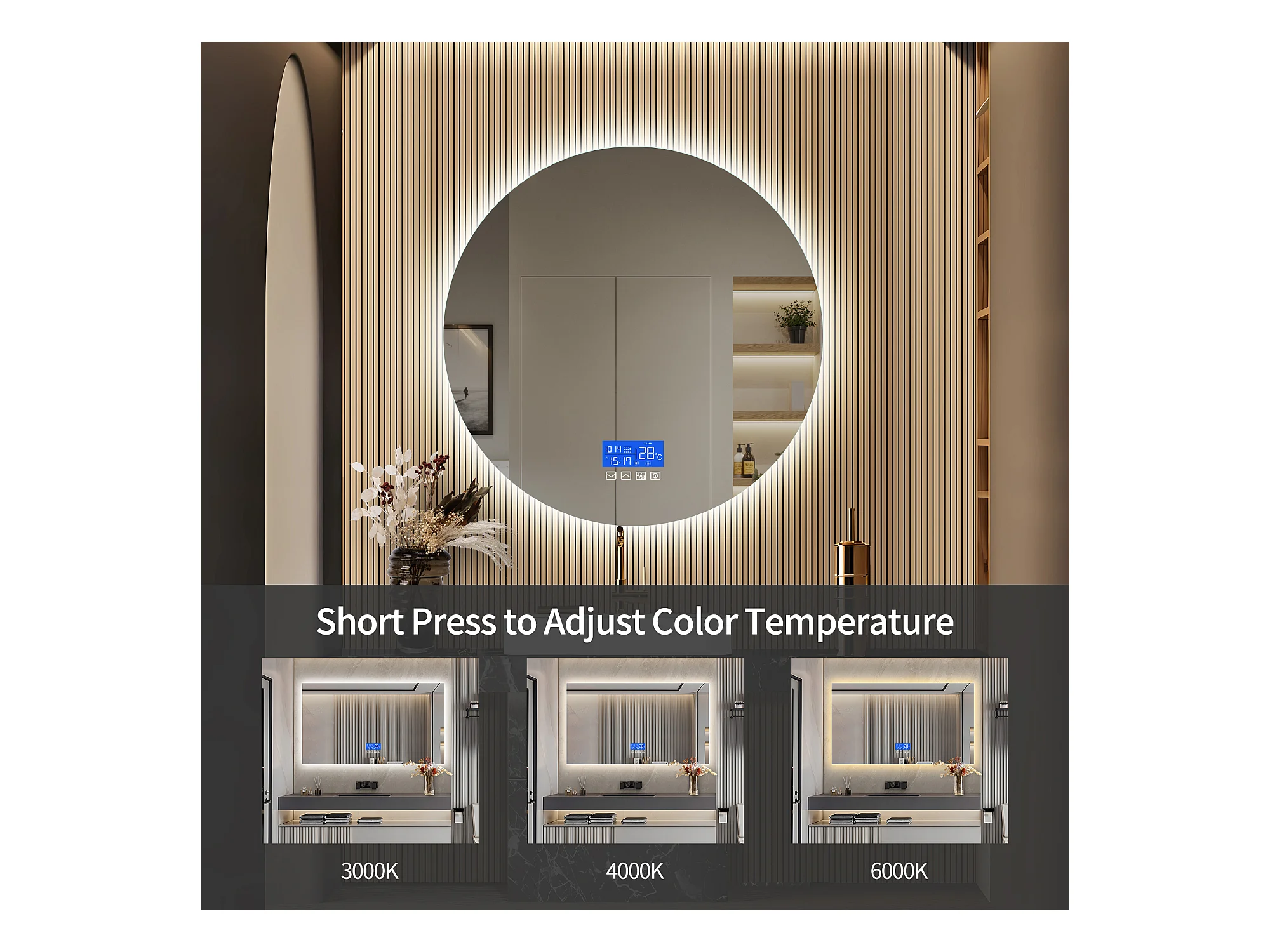 Ronde ontwasemende badkamerspiegel 100 cm - LED, temperatuur, 3 helderheidsniveaus