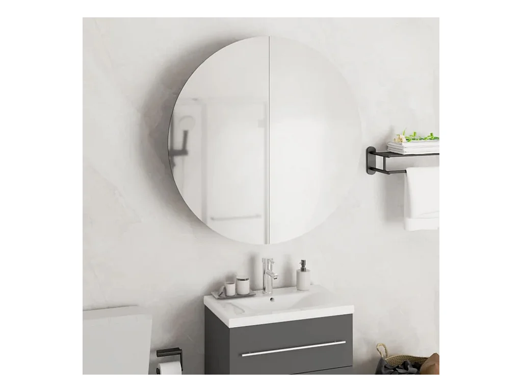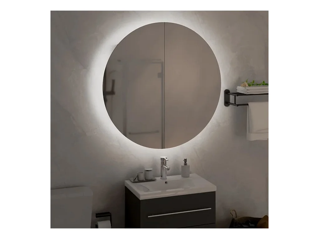 Ronde spiegelkast voor in de badkamer met ledverlichting, zwart, 47 x 47 x 17,5 cm