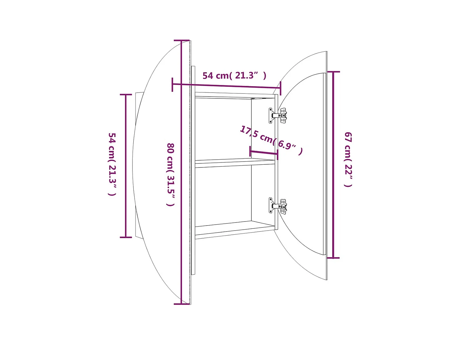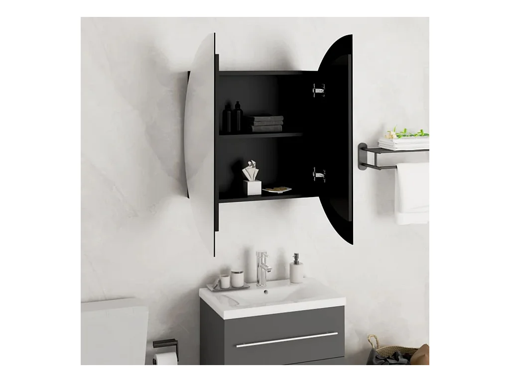 Ronde spiegelkast voor de badkamer met ledverlichting, zwart, 54x54x17,5 cm