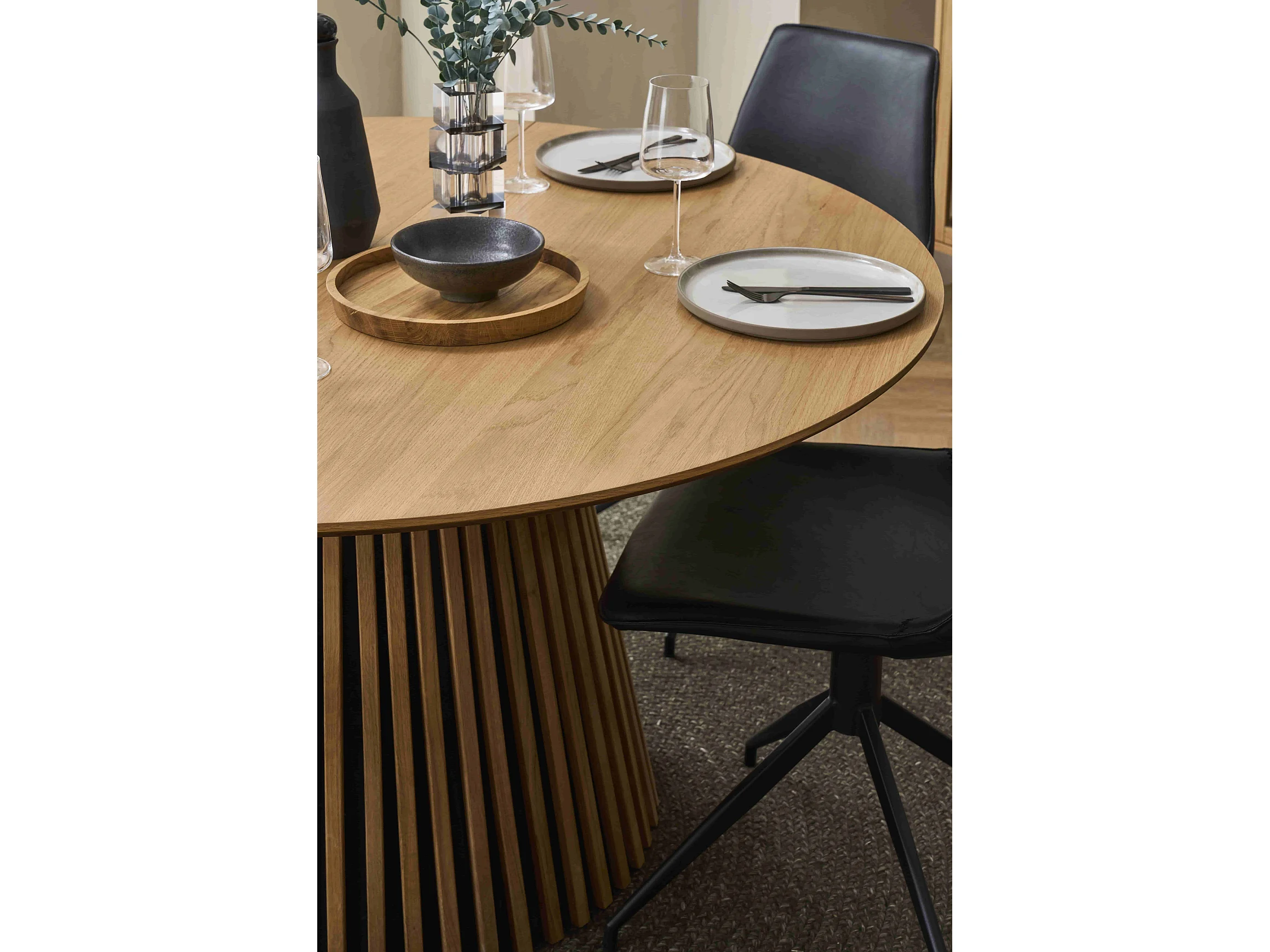 Ronde Uitschuifbare eettafel Svendborg - MDF & eiken fineer - Naturel