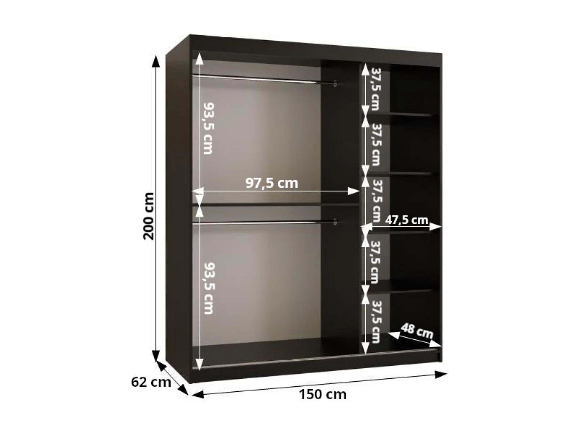 Schuifdeurkast Royal 200/150/62 2 deuren (Zwart)