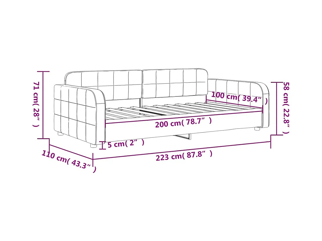 Dagbed met uitschuifbed roze 100x200 cm fluweel