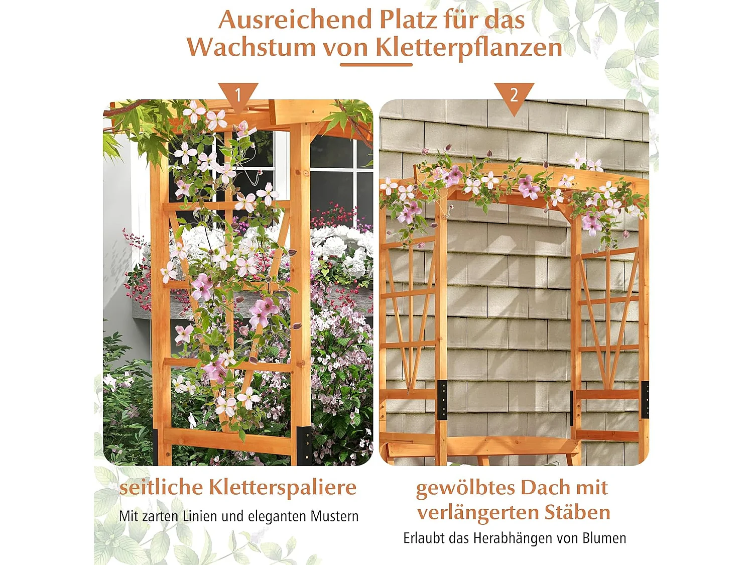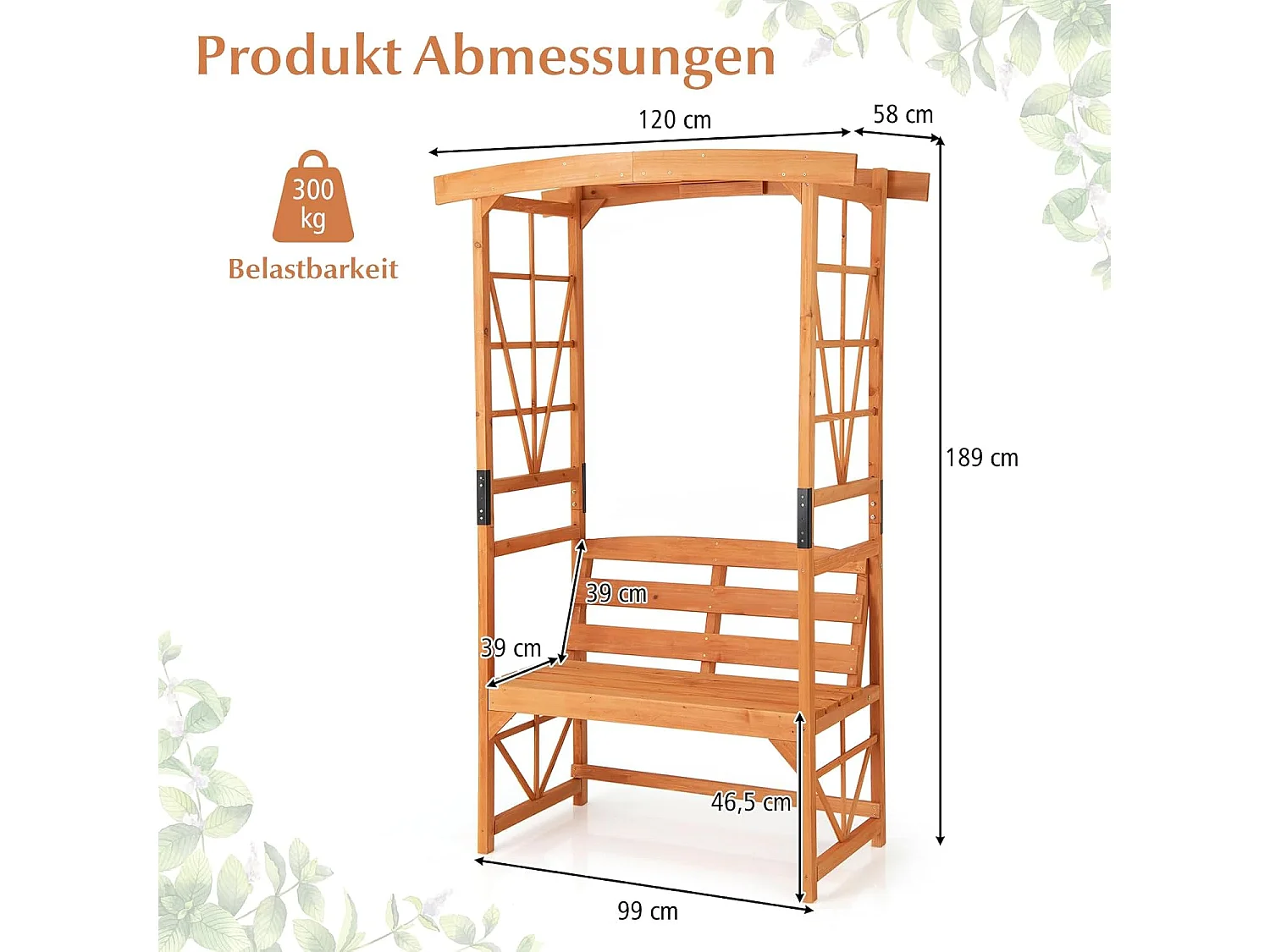 Rozenboog met bank, houten boog voor klimplanten, 2-zits tuinbank met klimhulp, zitbank met rankrooster, klimboog voor tuin, 120 x 58 x 189 cm ZB33820