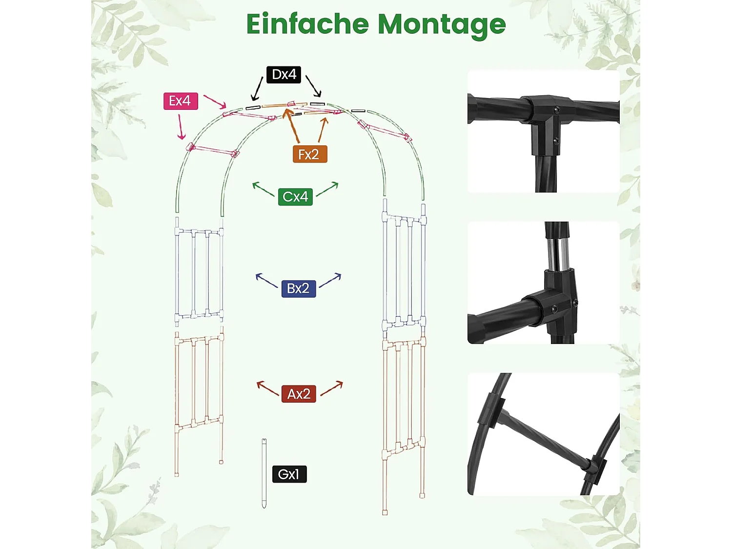 Rozenboog van metaal, 240 x 153 x 40 cm, tuinboog voor klimplanten, poortboog, klimhulp, rankhulp, klimboog voor tuin, bruiloft, feest