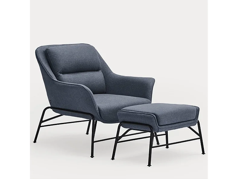 Rust-pieds in blauwe stof met metalen structuur 69x43 h45