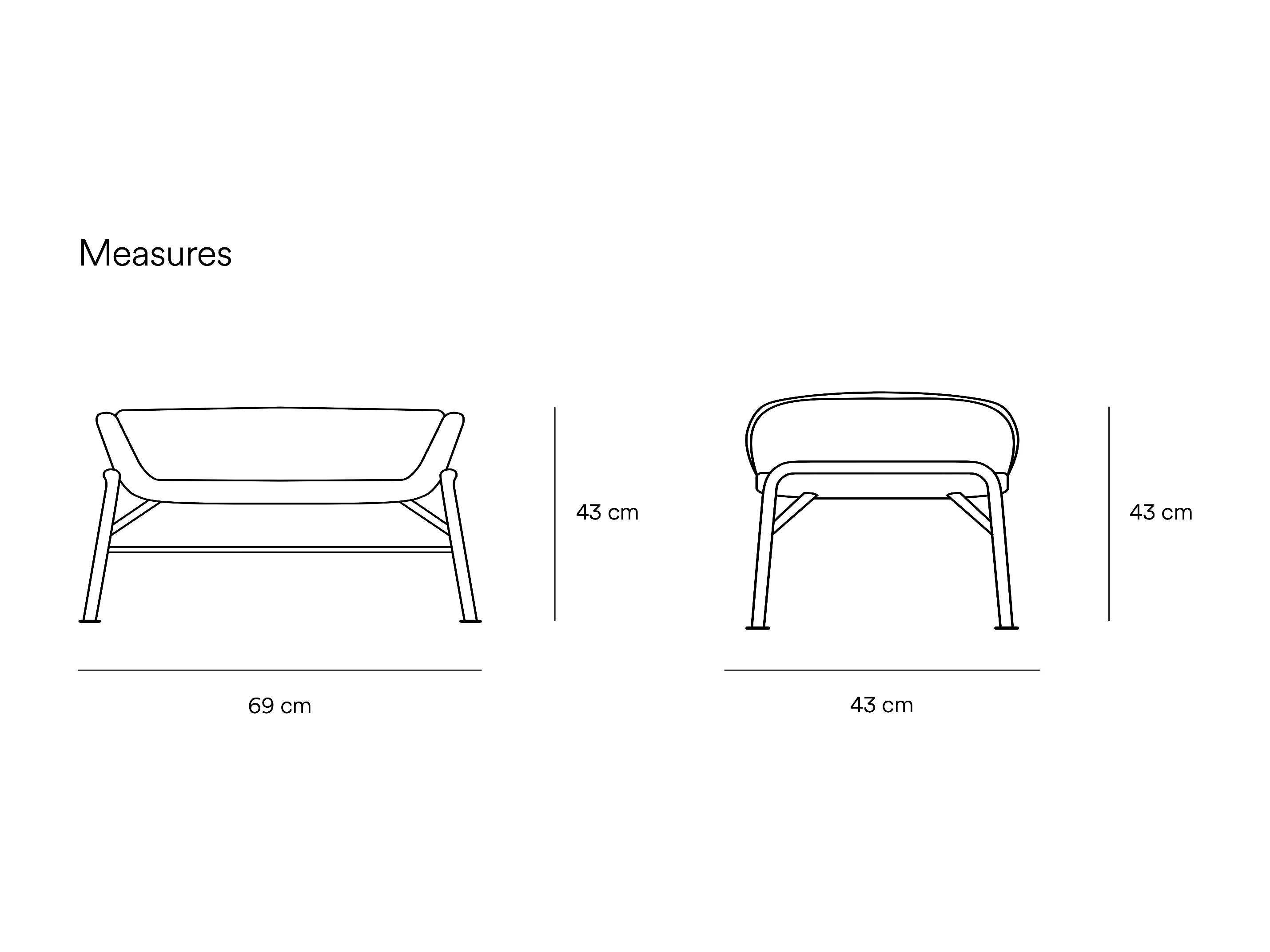 Rust-voeten in stoffen corail met metalen structuur 69x43 h45