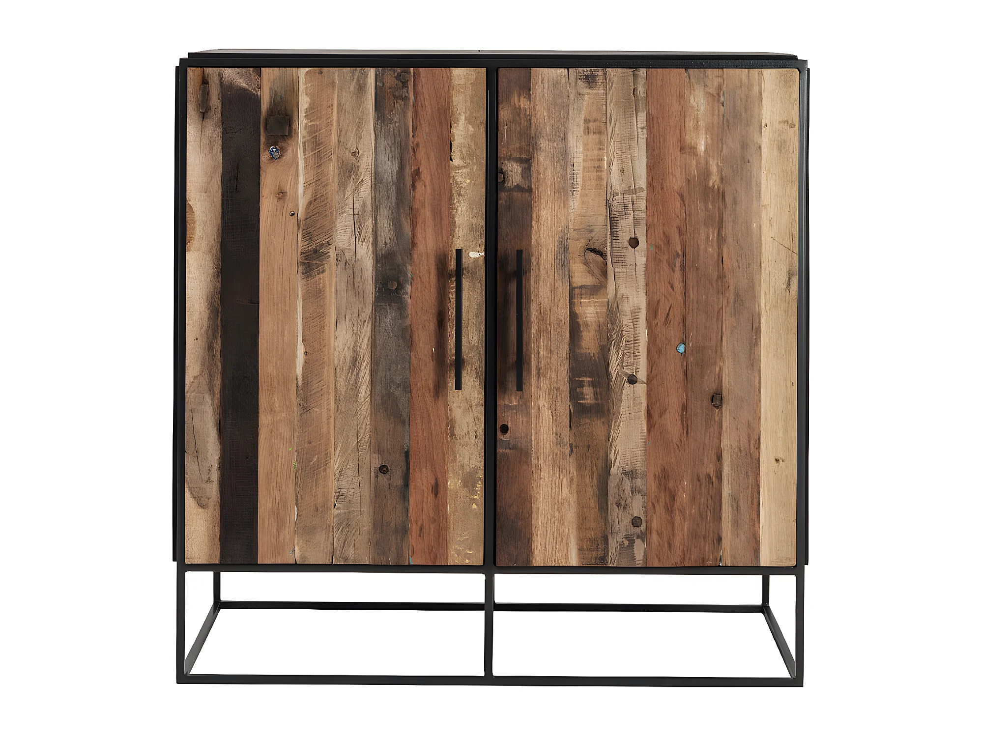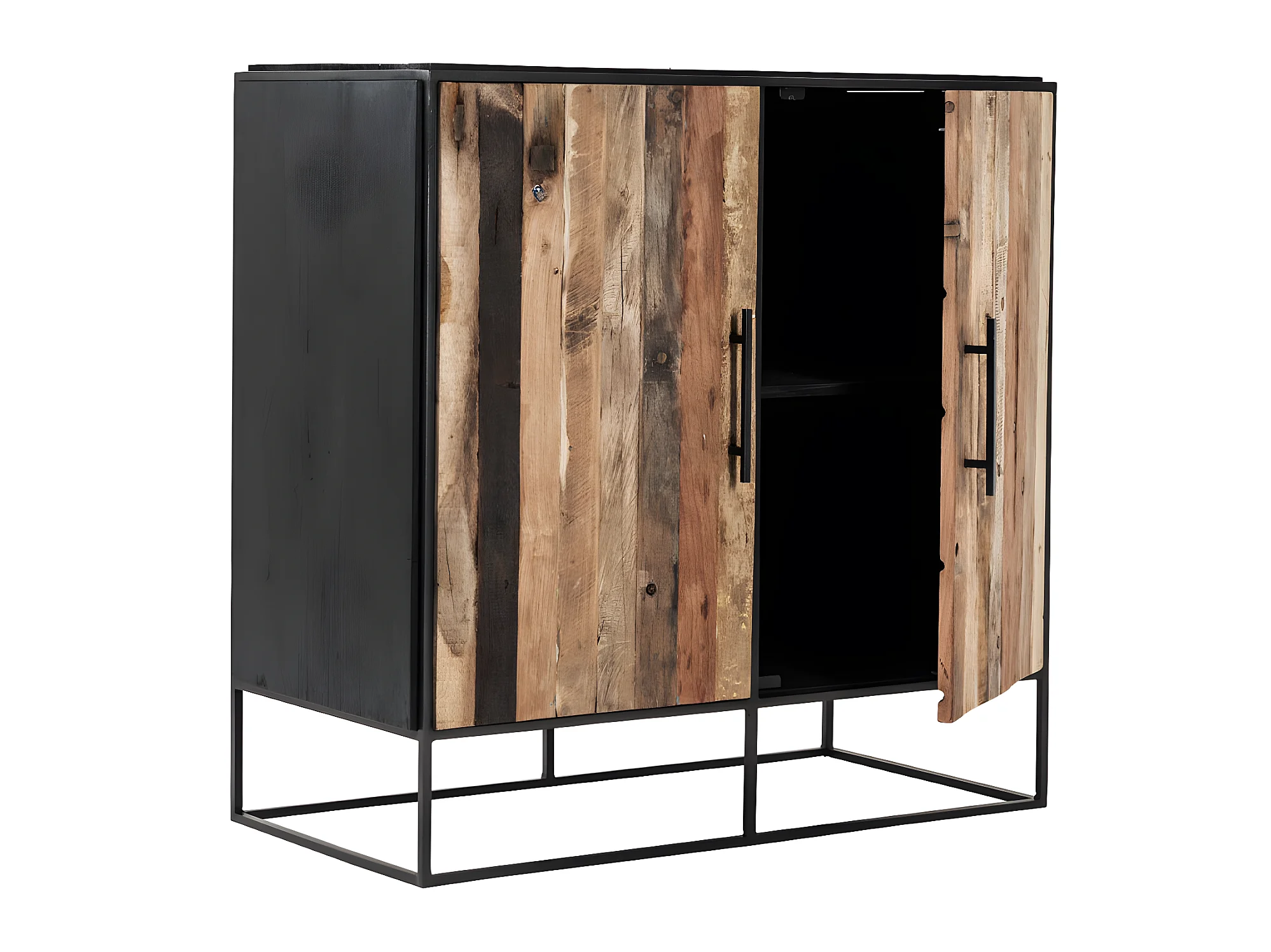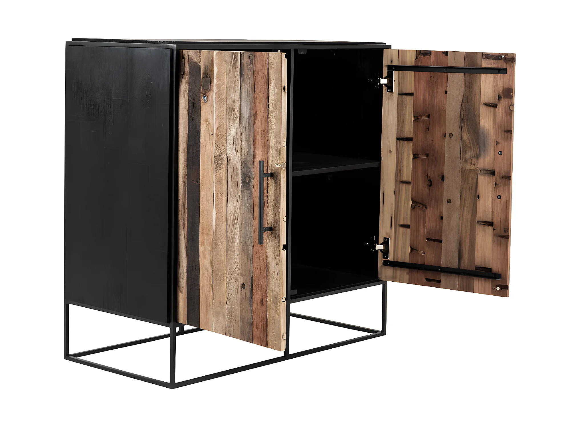 Rustika dressoir met 2 deuren, rustiek boothout & zwart.
