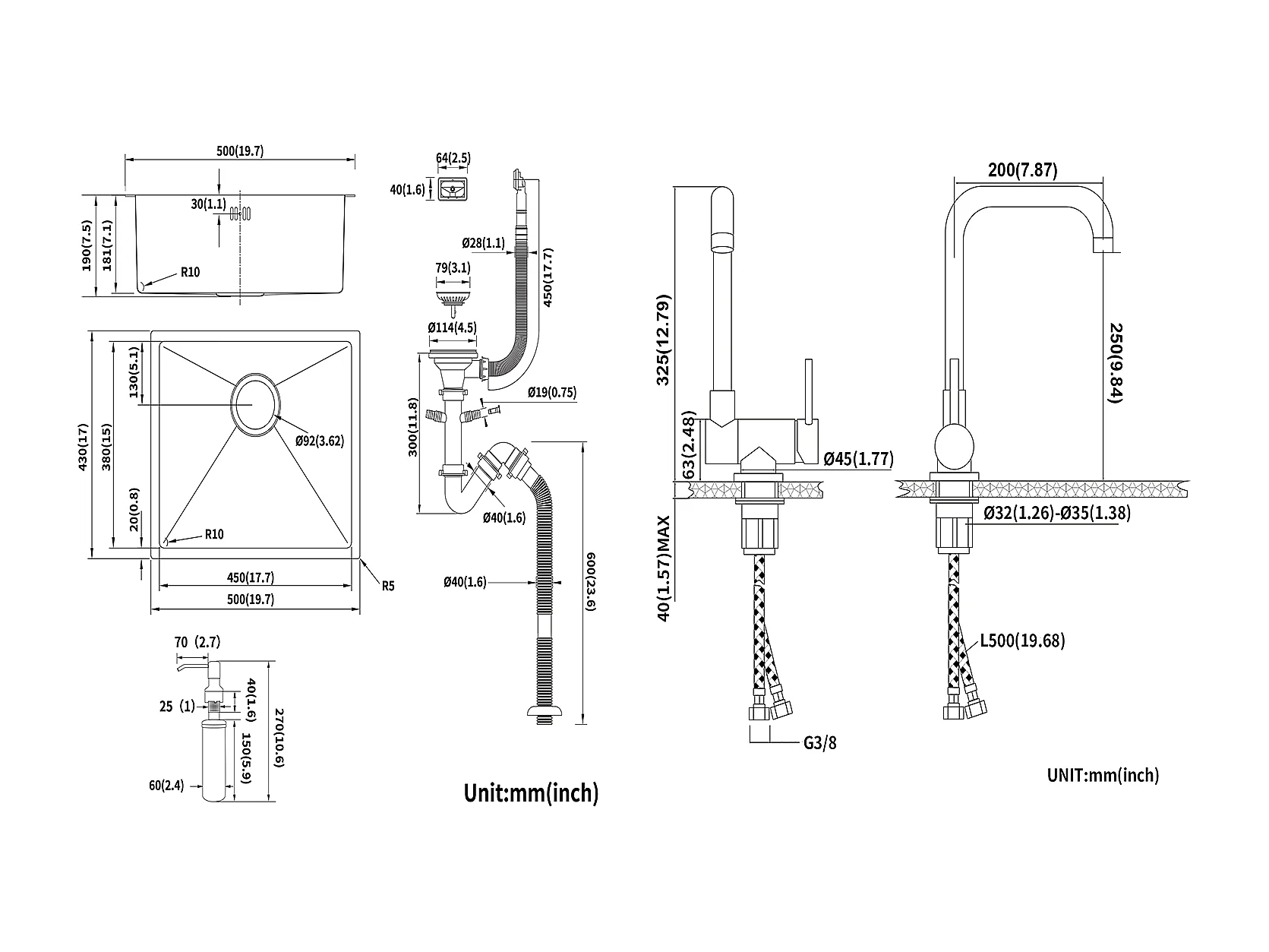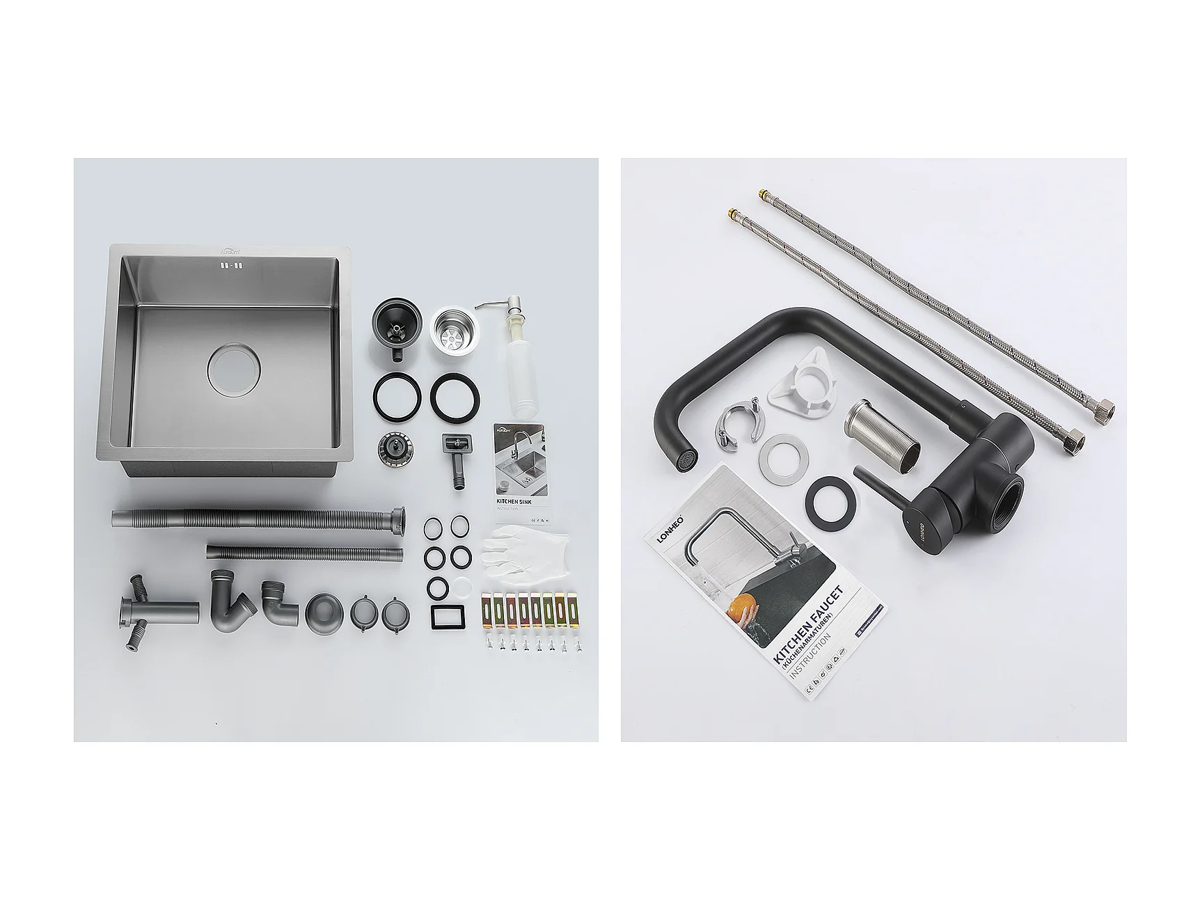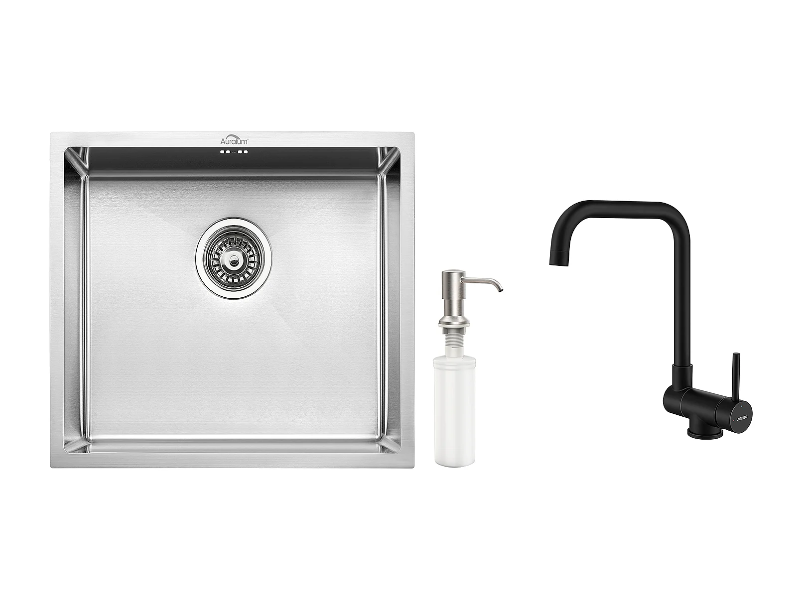 RVS Aanrecht 1 Bak 50*43*18CM met Zeepdispenser+Opklapbare Keukenmengkraan Draaibaar 360° Koud Water Warm,Zwart