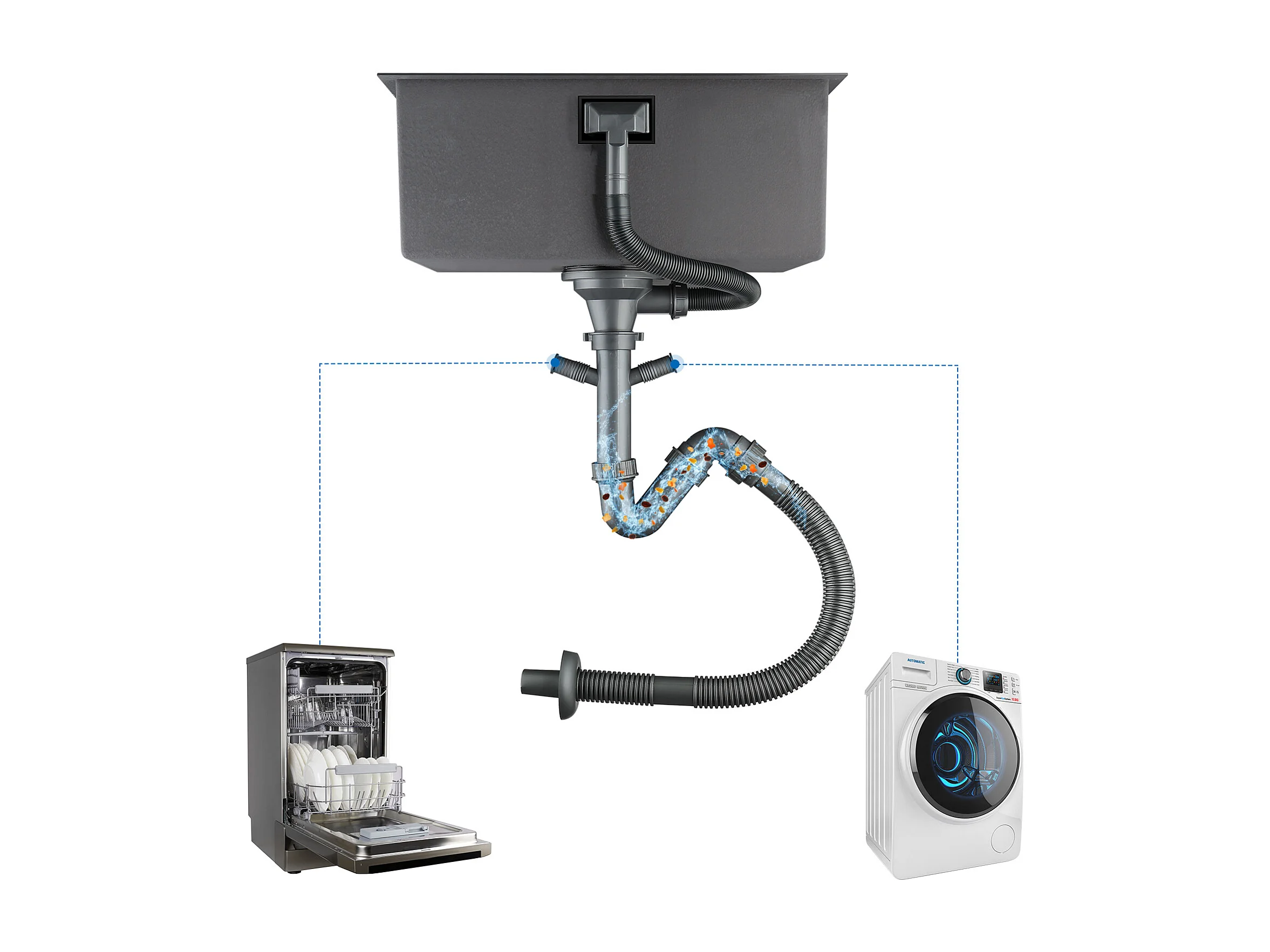 RVS Aanrecht 1 Bak 50*43*18CM met Zeepdispenser+ Keukenkraan met Uittrekbare Handdouche, Zwart+Chroom