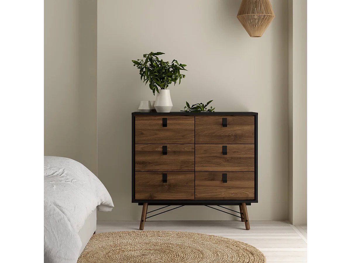 Rye Ladekast 6 laden matzwart, walnoot decor.