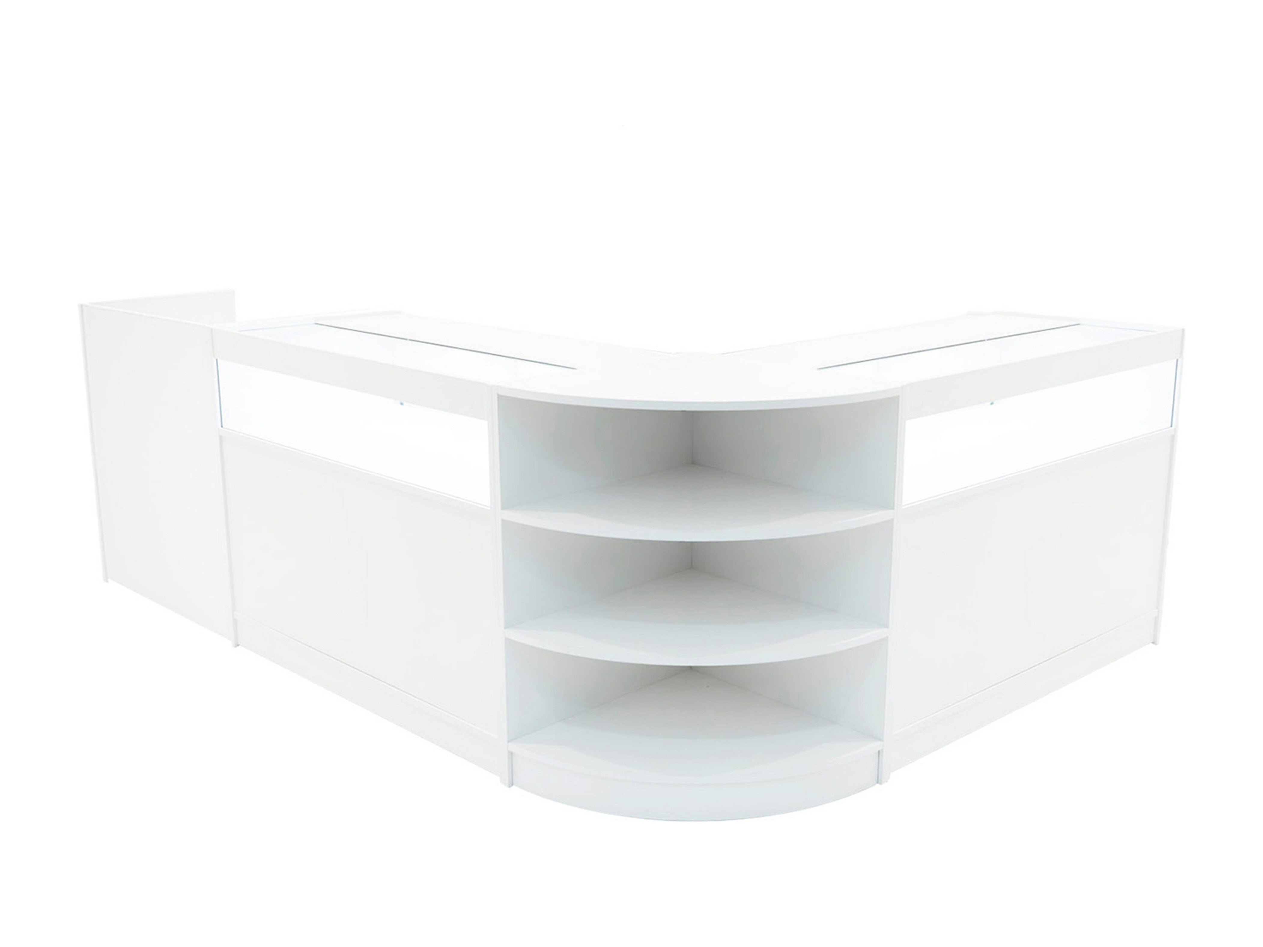 Tous les comptoirs sont fabriqués en MDF de haute qualité avec une finition en mélamine blanc durable, garantissant robustesse, longévité et esthétique moderne. Ce matériau commun et cette finition coordonnée assurent une apparence harmonieuse dans votre agencement, tandis que les éléments en verre trempé du B1200 ajoutent une touche haut de gamme aux zones d exposition.