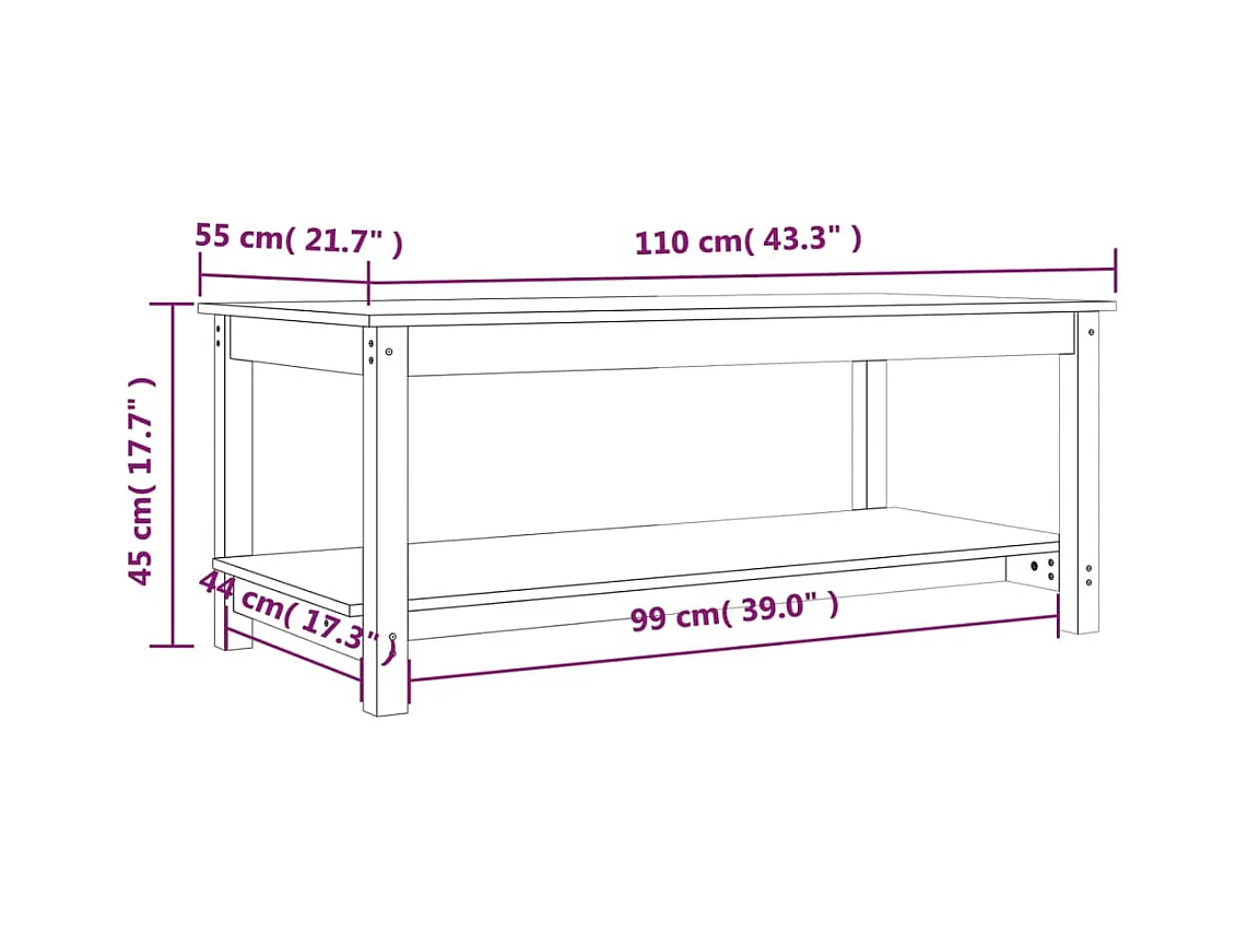Salontafel 110x55x45 cm massief grenenhout