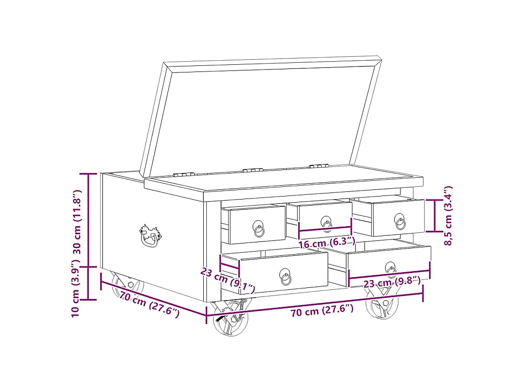 Salontafel 70x70x40 cm ruw mangohout