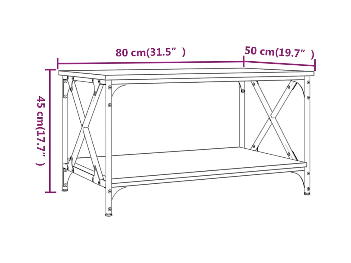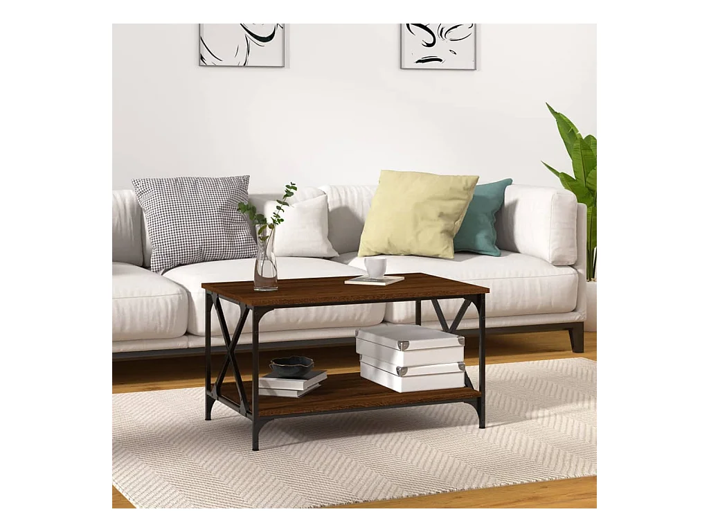 Salontafel 80x50x40 cm bewerkt hout en ijzer bruin eikenkleur