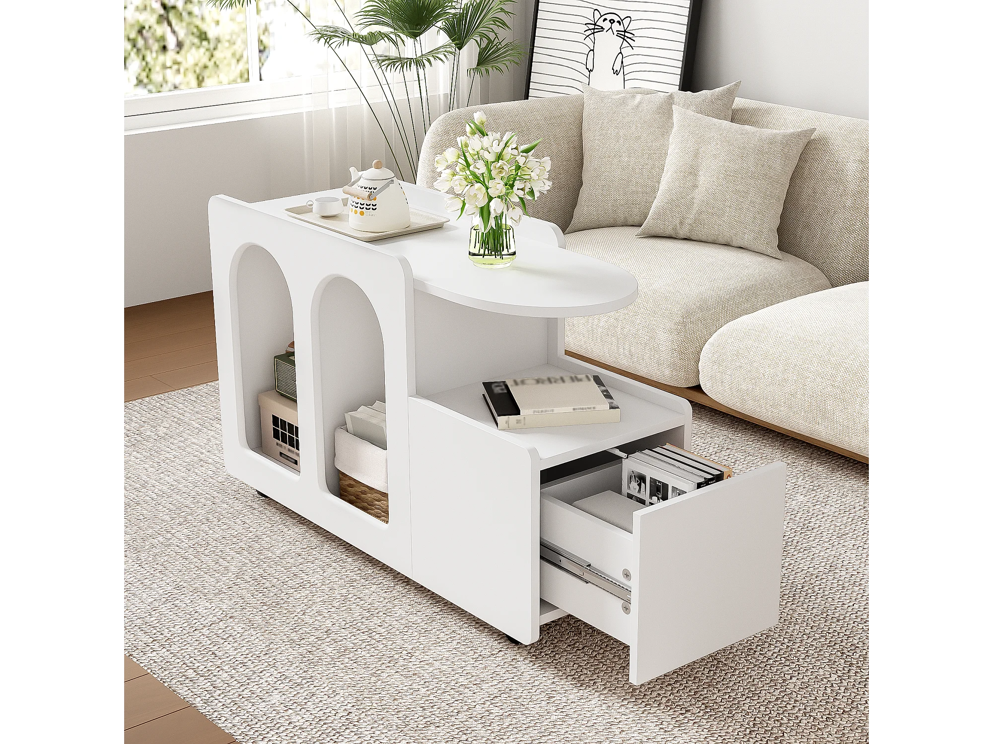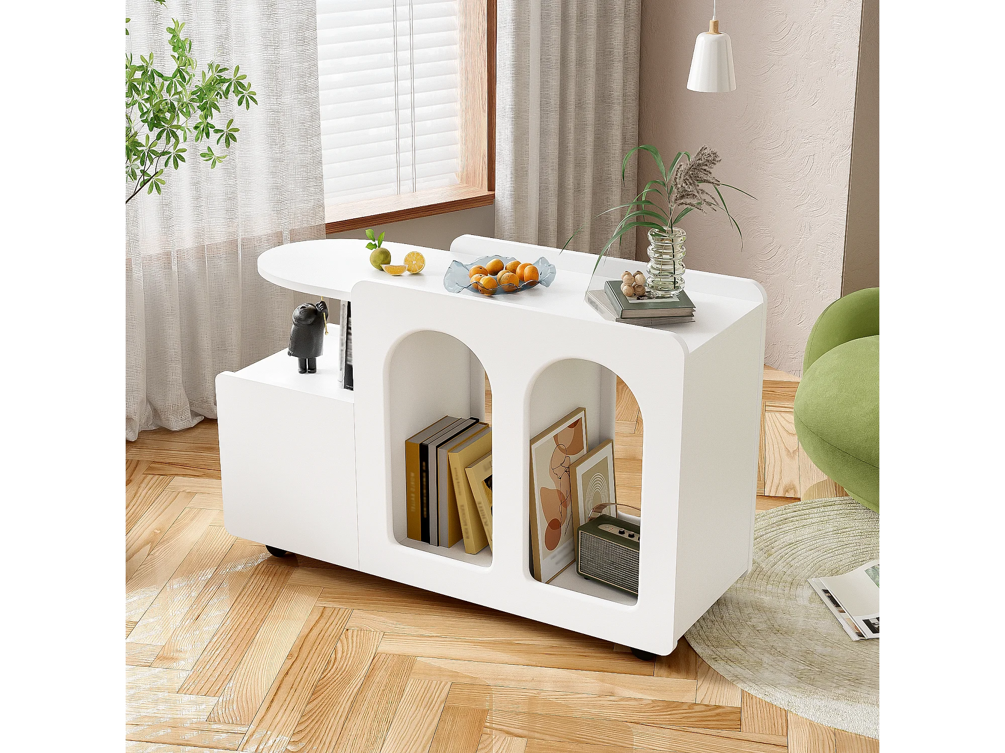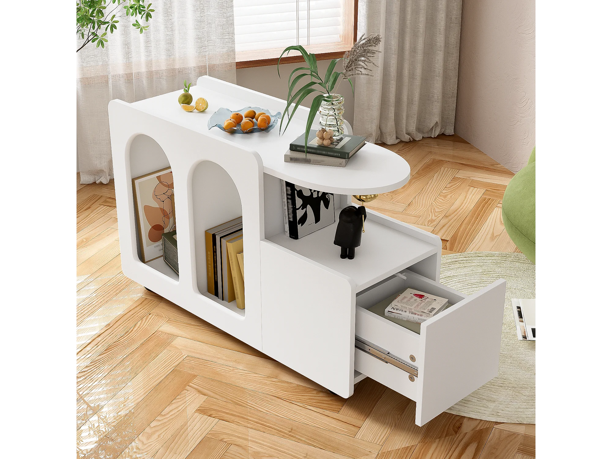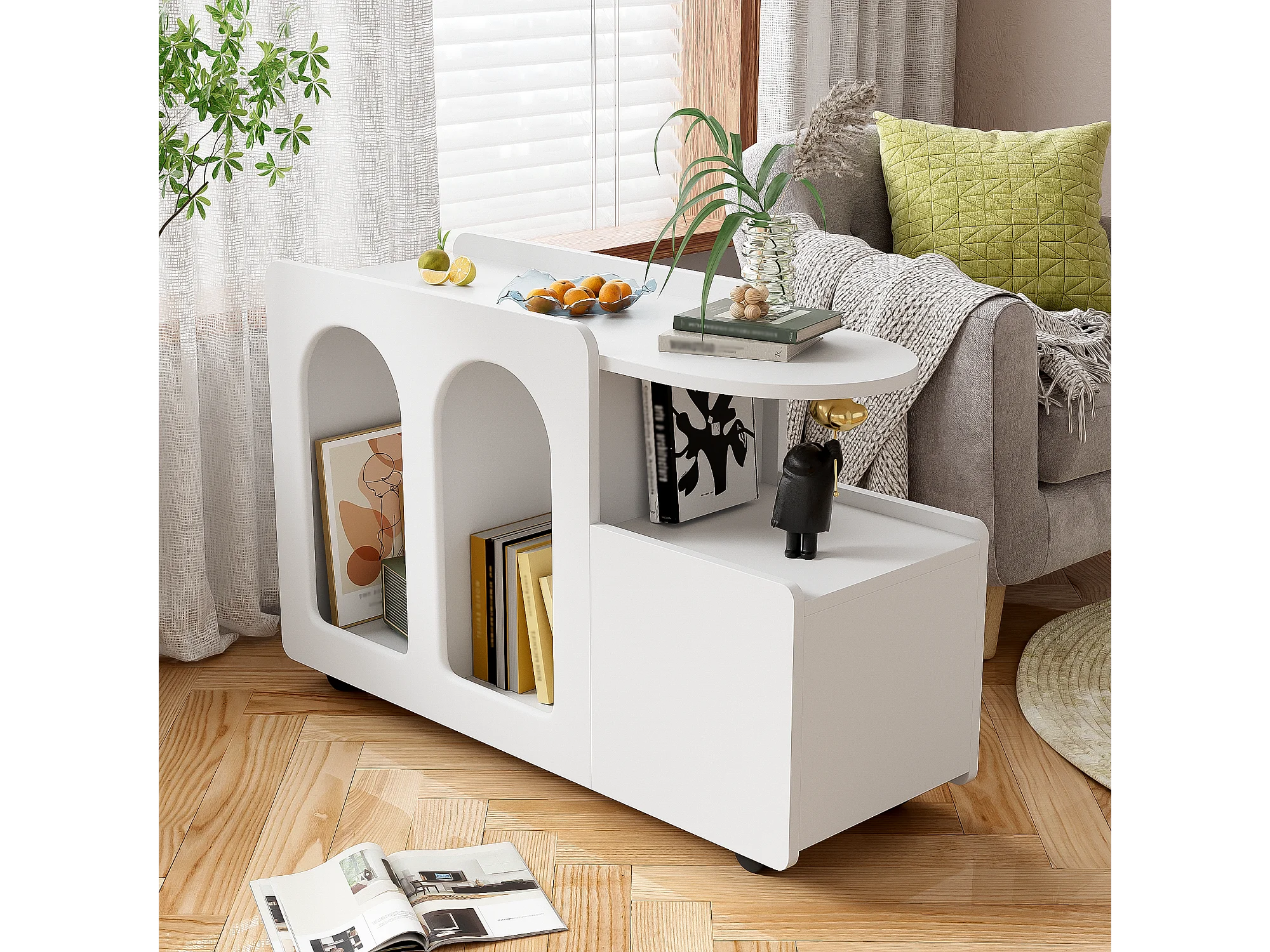 Salontafel 82x30x54cm - Zijkast op wielen, - wit
