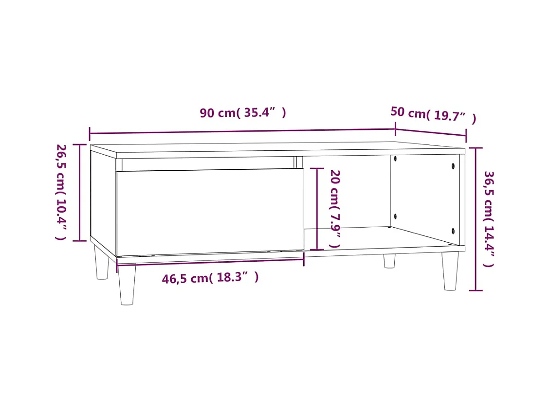 Salontafel 90x50x36,5 cm bewerkt hout grijs sonoma