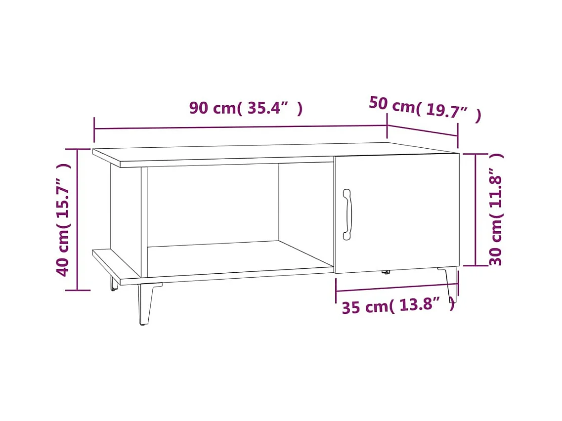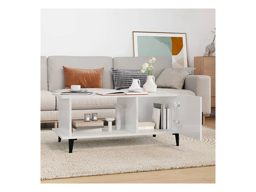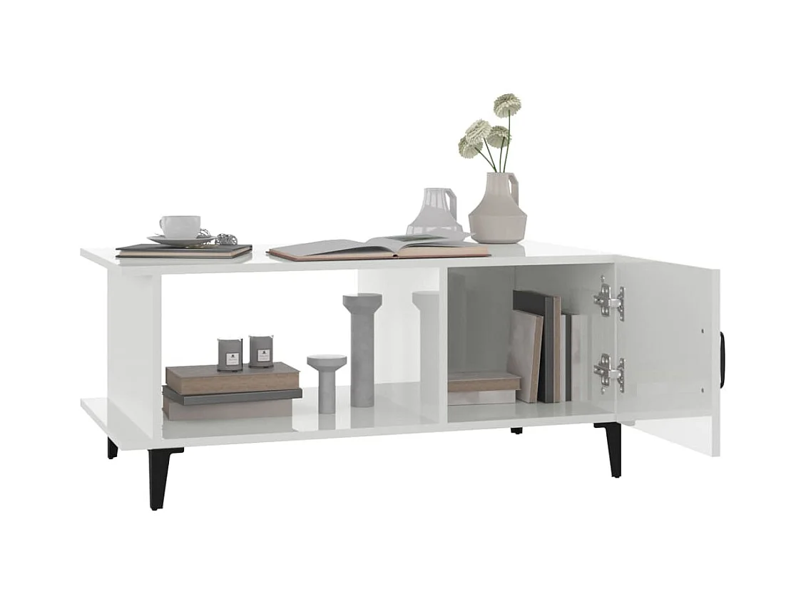 Salontafel 90x50x40 cm bewerkt hout hoogglans wit