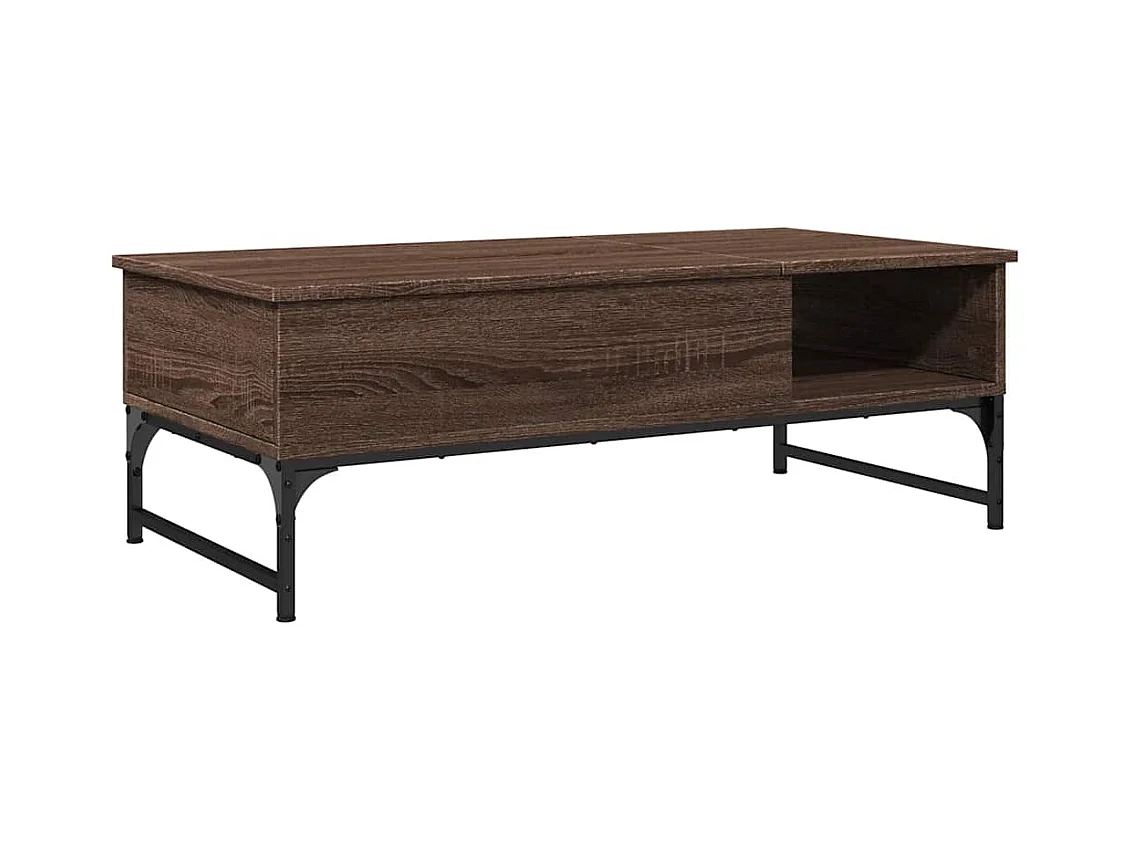 Salontafel bruin eiken 100x50x35cm bewerkt hout en metaal